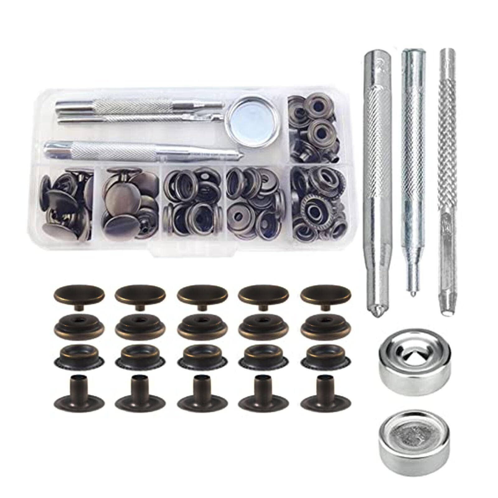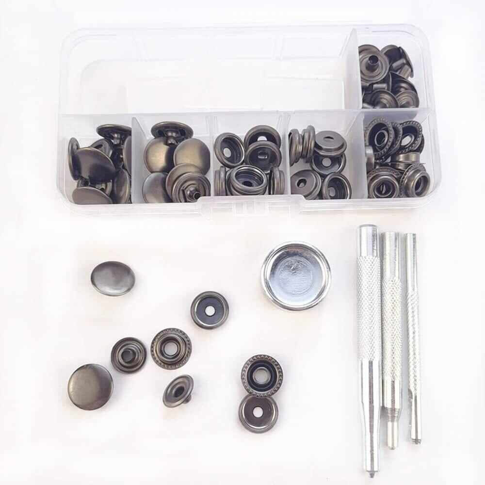 【新着商品】サムコス ジャンパーホック ステンレス鋼メタルボタン 黒ニッケル 15mm 18セット レザークラフト 工具 4種類 手芸/家庭/裁縫用 DIY 手作り ハンドメイド (収納ケース付き) | gsmshop