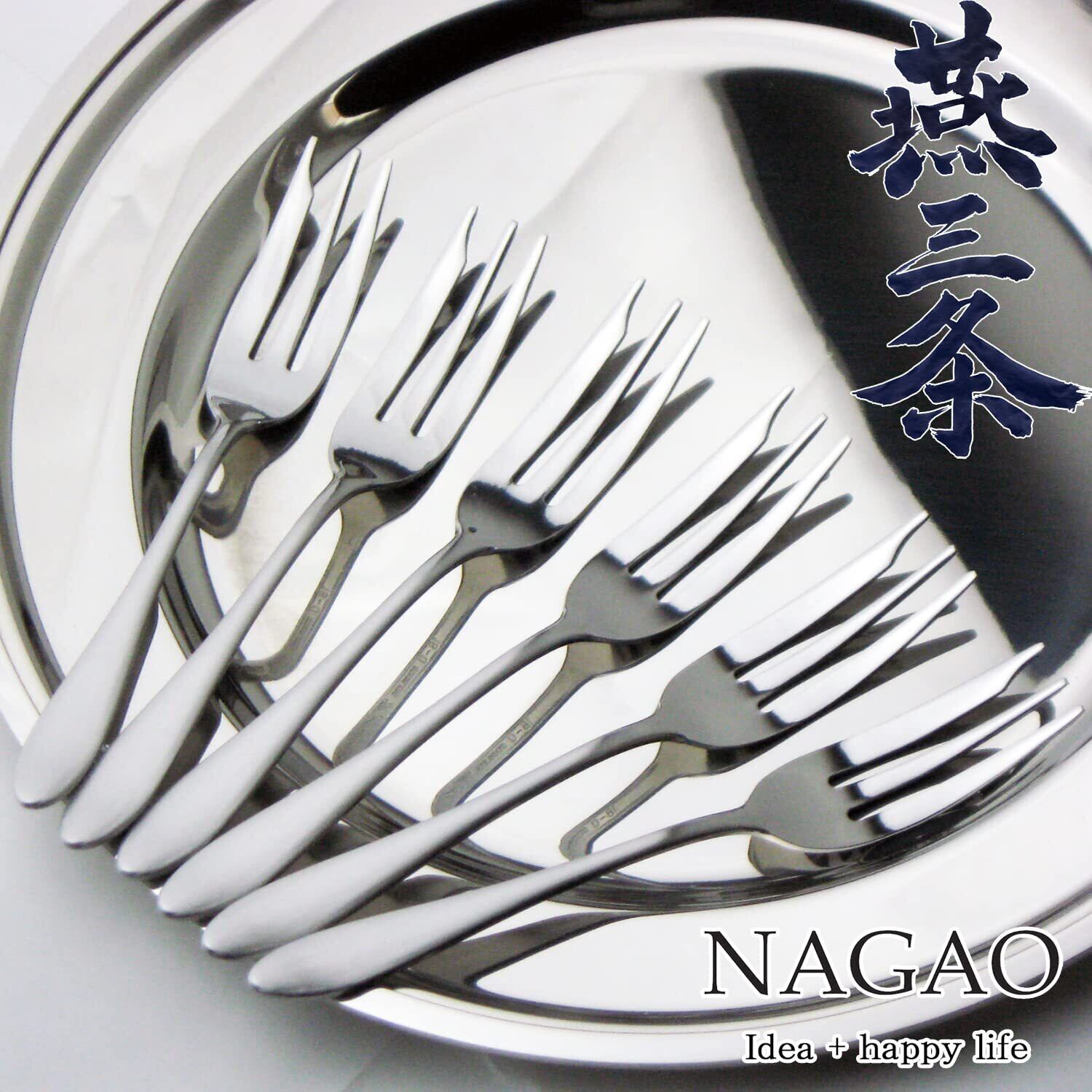 ナガオ 燕三条 ケーキフォーク 5本+1本 14.5cm 18-0ステンレス 日本製