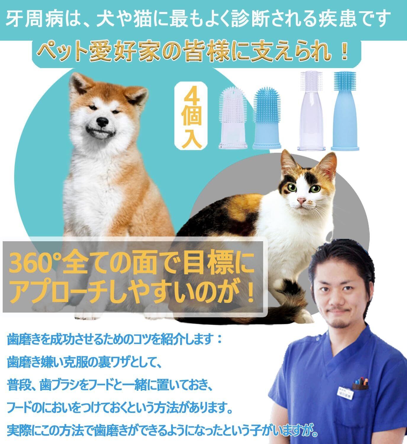 バイレウメック 犬用歯ブラシ、猫用歯ブラシ、獣医監修の中小型犬向け歯ブラシ【4個セット】- 口腔敏感犬猫専用、厚さ2mmの加厚タイプ