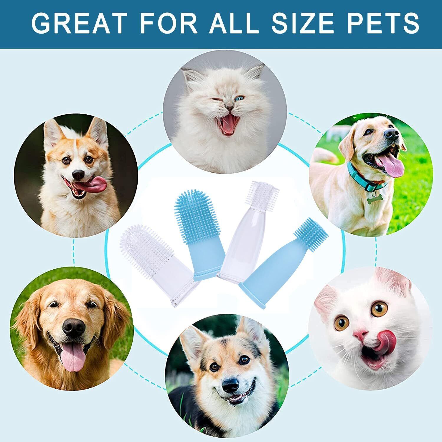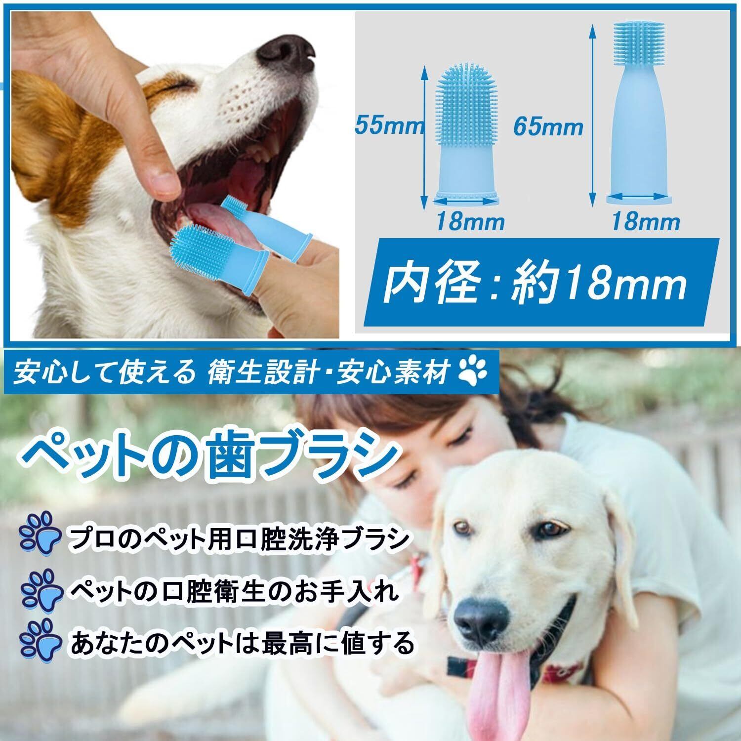 2023年の新しい犬用指テープブラシ4個セットです。全方位ブリッスル、食品グレードシリコン素材で、子犬の歯のクリーニングや口臭対策に最適です。使いやすいペットの歯のケアアイテムです。