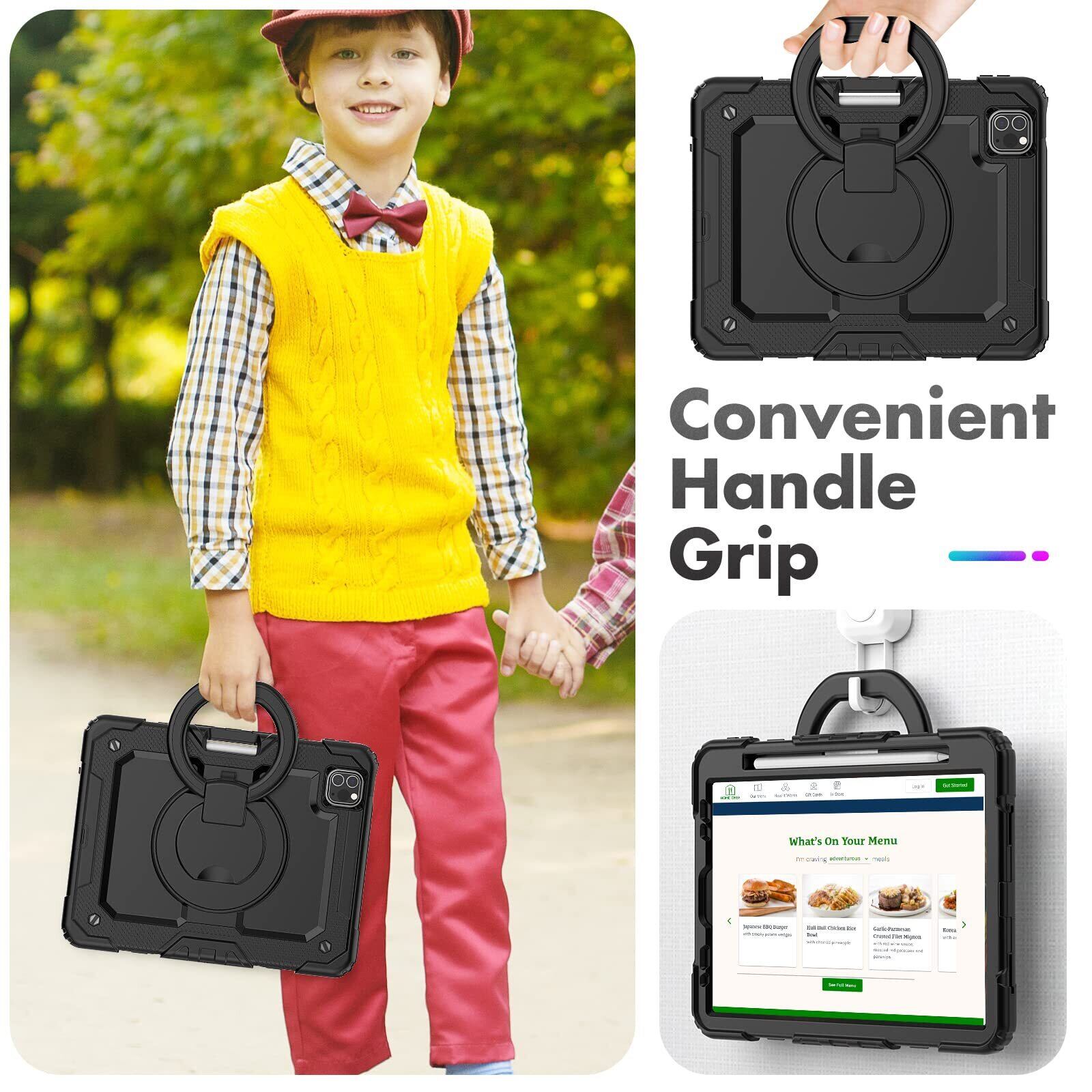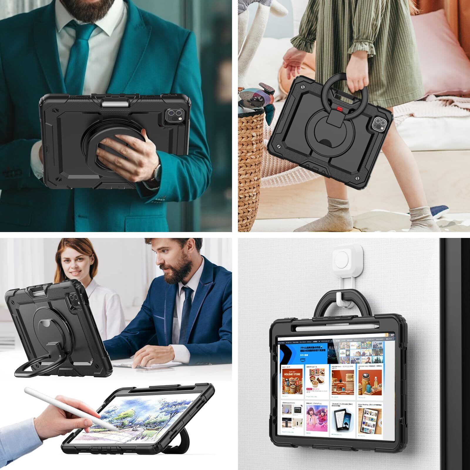 「ハンドル&ショルダーストラップ」:回転盤にハンドバンドが設計されております。その中にお手を入れると、何の力もかからずおタブレットの重心をしっかり掴めます。また、最長49インチの可調整のショルダーストラップが配達されていて、それをiPad 第11/ 10世代ケースに繋ぐと、ご設備の携帯はとても便利になります。