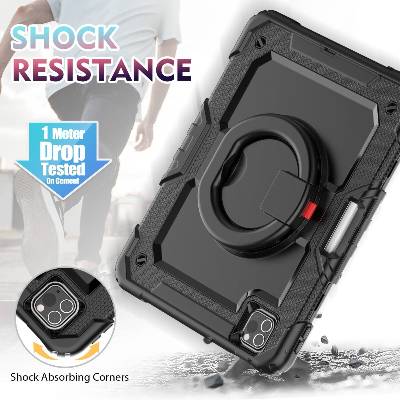 Timecity iPad (A16) 第11/10世代 ケース 2025新モデル 耐衝撃 iPad 10世代 (10.9インチ) / 11世代 (11インチ) カバー 360度回転リングスタンド 保護フィルム付き ペン収納 ショルダーストラップ付き 頑丈 傷防止 2025/2022 アイパット 第11/10世代 リングケース (ブラック)