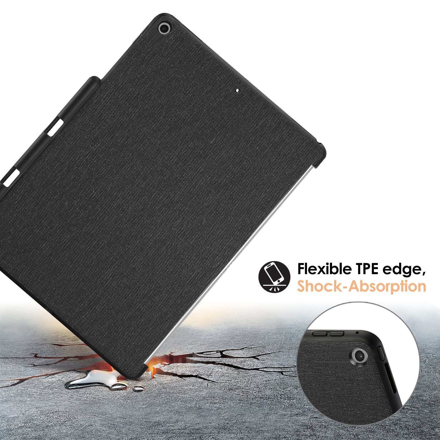 ProCase iPad 10.2" 9/8/7 背面ケース, バックカバー ペンシルホルダー付き スマートキーボードと組み合わせて使用可能 対応端末:iPad 10.2" 9世代 (2021)/8世代(2020)/7世代 (2019) - ブラック