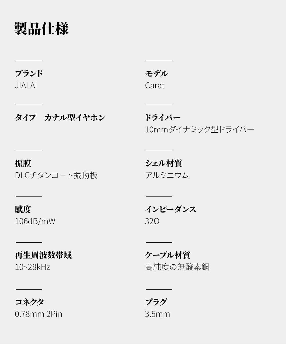 【2022最新】JIALAI Carat カナル型イヤホン 耳掛け式 イヤモニ 10mm DLCチタンコート振動板 ダイナミック型ドライバー hifi 有線 遮音性 2pin 0.78mmリケーブル 5軸CNC 3.5mmプラグ 絡まないケーブル オーディオマニア 中華 無酸素銅OFCケーブル | gsmshop