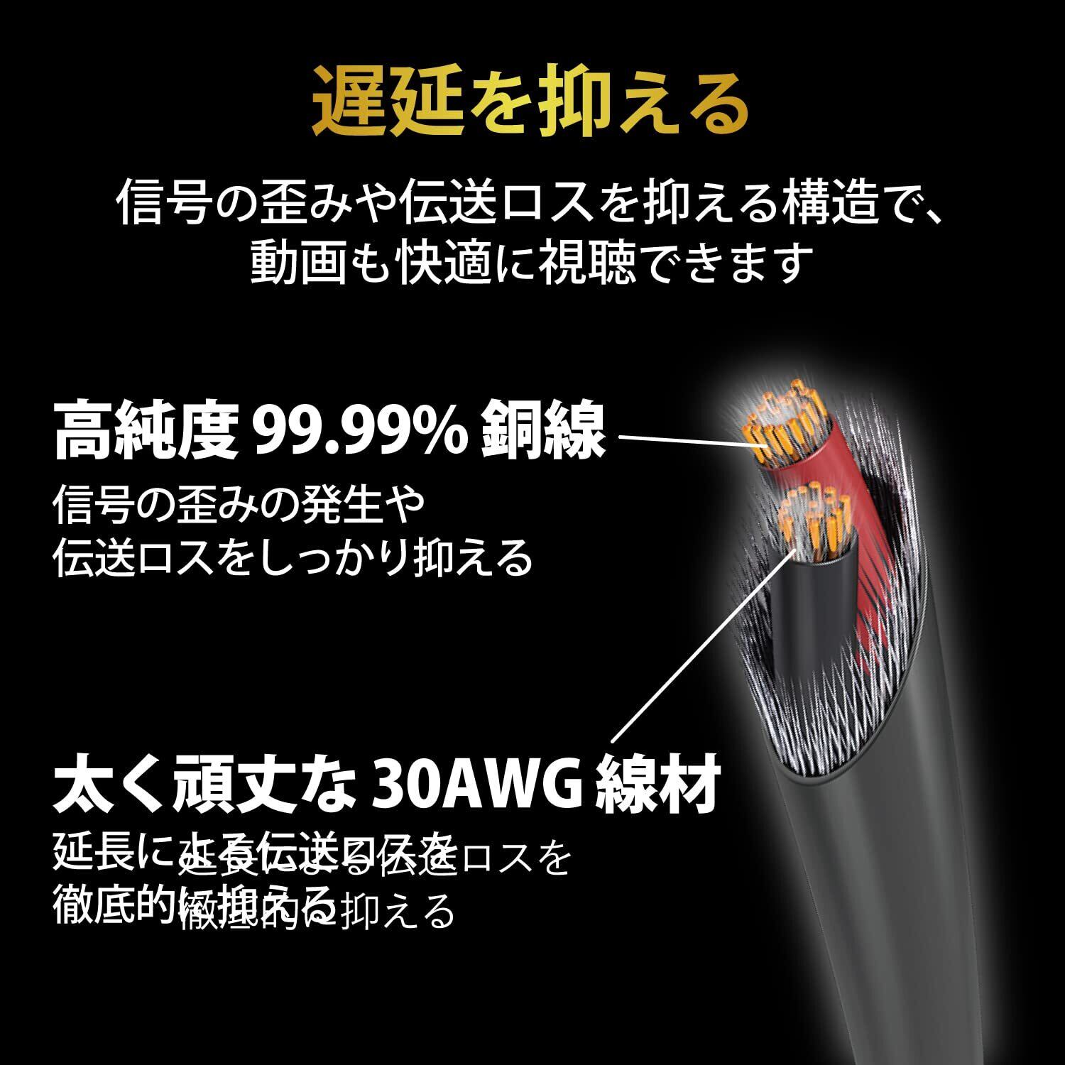 ■ 信号の歪みの発生や伝送ロスをを抑える、高純度99.99%の銅線(OFC)を採用しています。