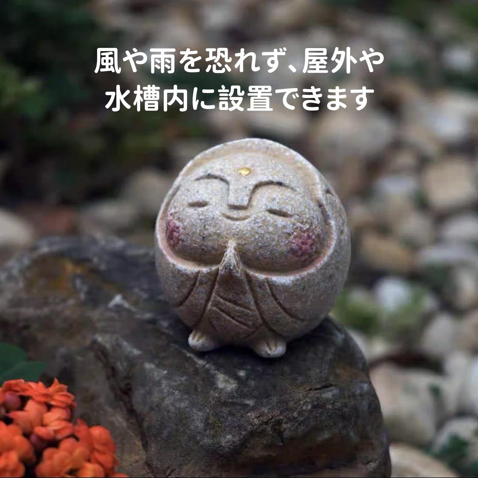【水槽に応用できる】無関心に泳ぐ金魚と地蔵様の(笑顔の)コントラストを気に入っています。 飼っている金魚の無病息災を願い、水槽に入れても大丈夫です。製品は実体で防水性があり、茶のお供や植物の仲間、水槽の飾り、家庭用の飾りとして使用できます。