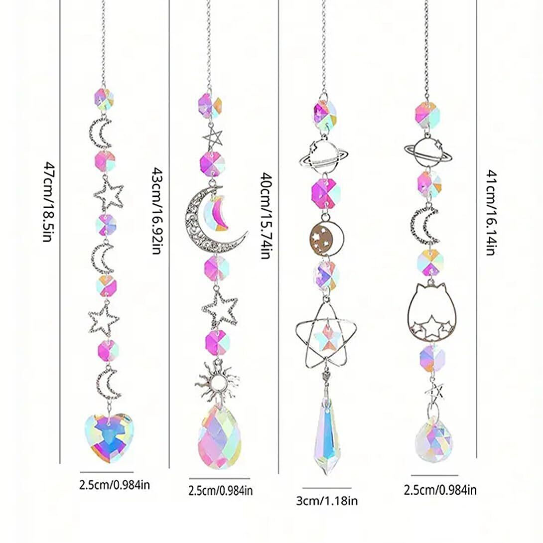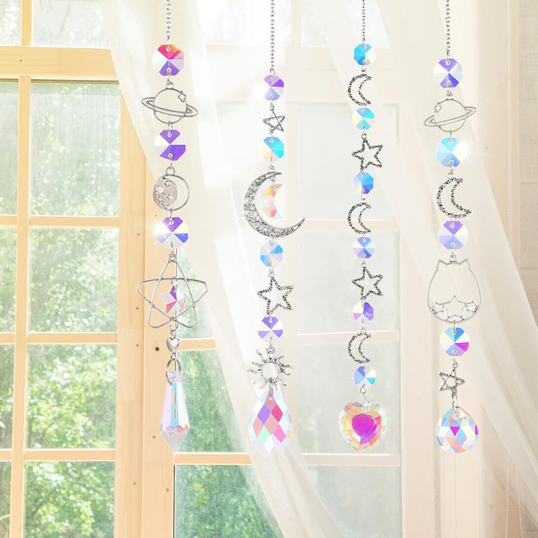 Koonafy サンキャッチャー カラークリスタル 4つセット ペンダント クリスタル 水晶 風水物 ウィンドウ吊り飾り 装飾品 ぶら下げペンダント ホーム パーティー 飾り 入り口 窓 車内飾り 屋内用 屋外用 装飾用ウィンドチャイム 惑星 月 猫 星 ギフト (惑星スタイル)