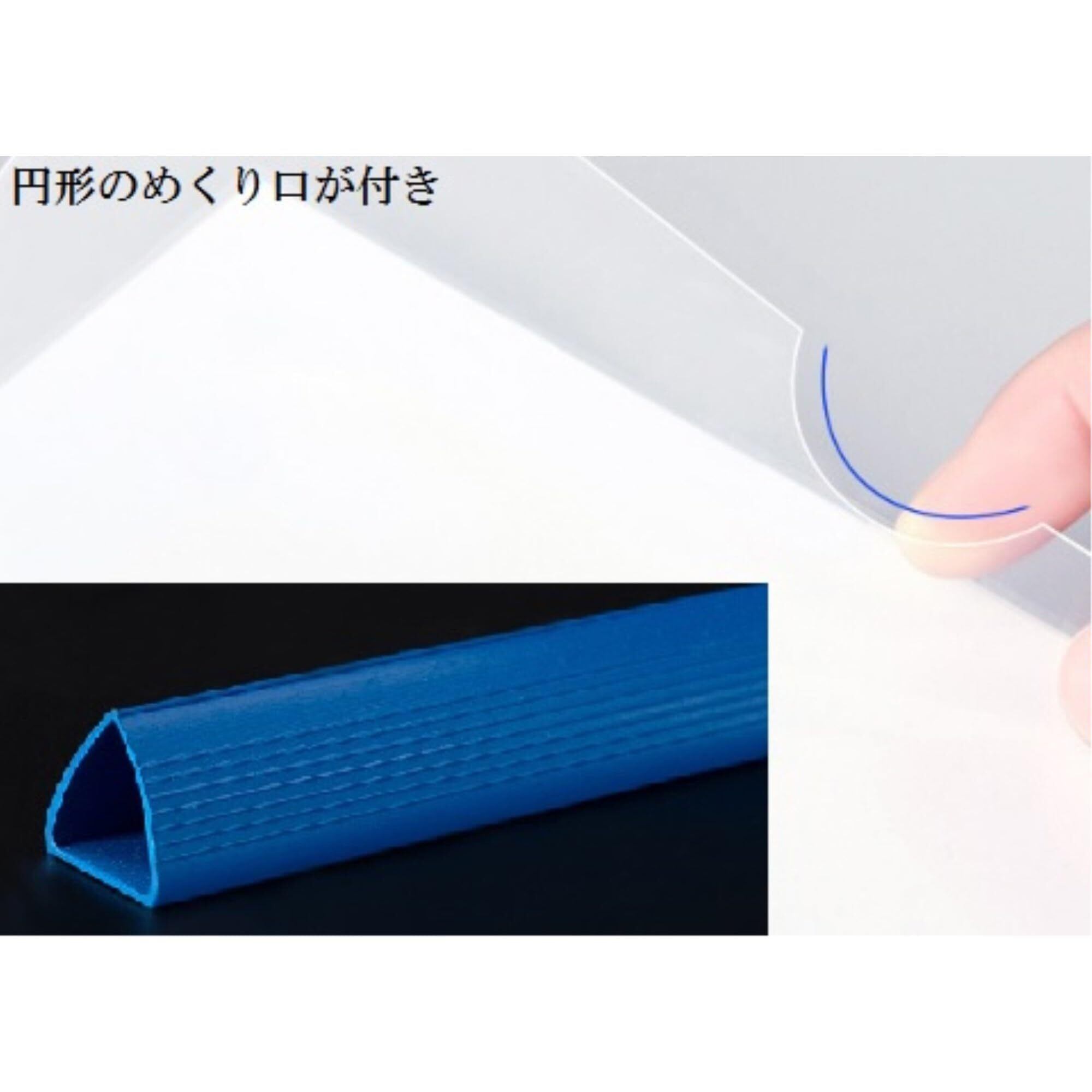 見やすいデザイン: A4サイズで、ファイル部分は中身が見えるクリアカラー。半円形のめくり口が付いているので、書類がすぐに確認できます。