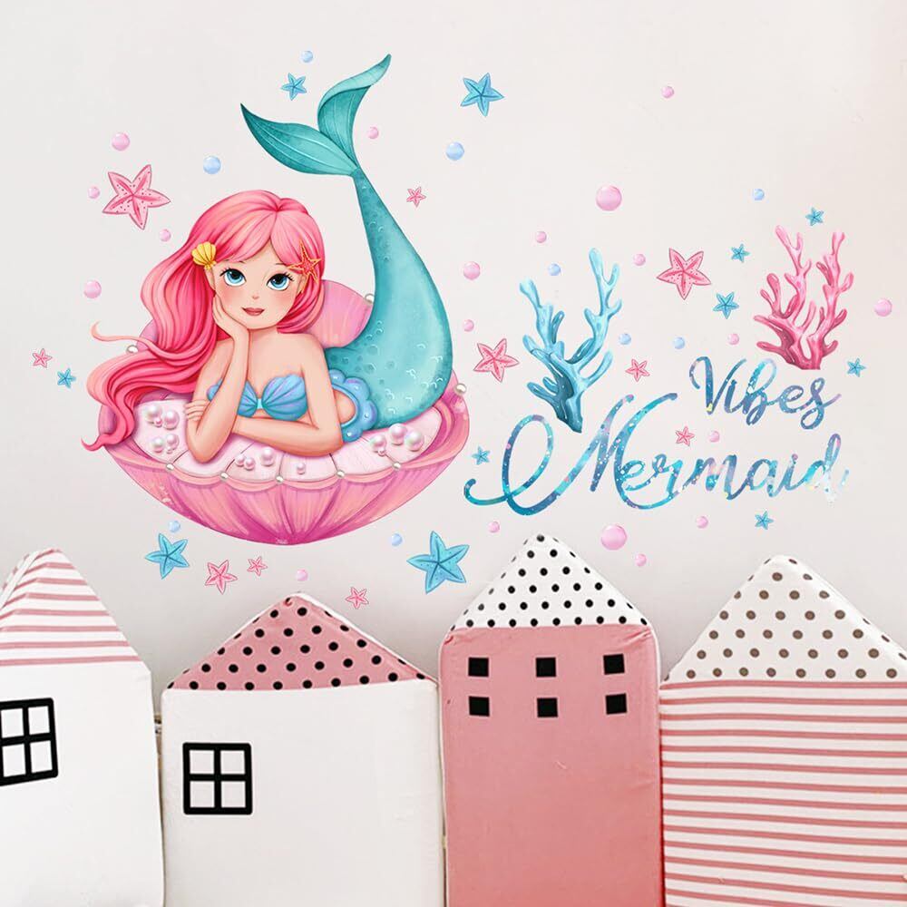 不二玩家 ウォールステッカー 人魚姫 シルエット 海洋 マーメイド 海藻 魚 おしゃれ