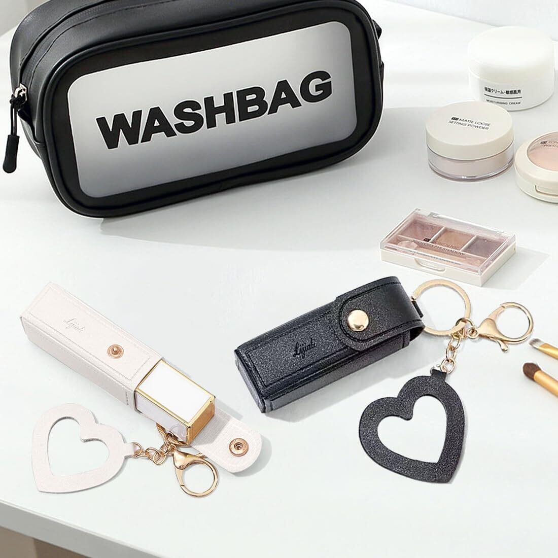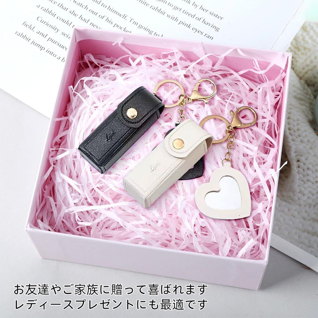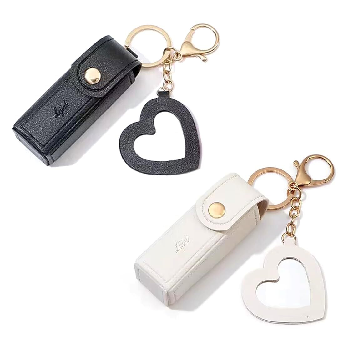 [Voyyphixa] 口紅ケース 収納ケース リップグロス 2色セッド キーホルダー+ミニハートミラ付き ミニ口紅バッグ レディース リップケース PUレザー リップ化粧ポーチ かわいい お洒落 持ち便利 化粧品容器 プレゼント (ホワイト+ブラック)