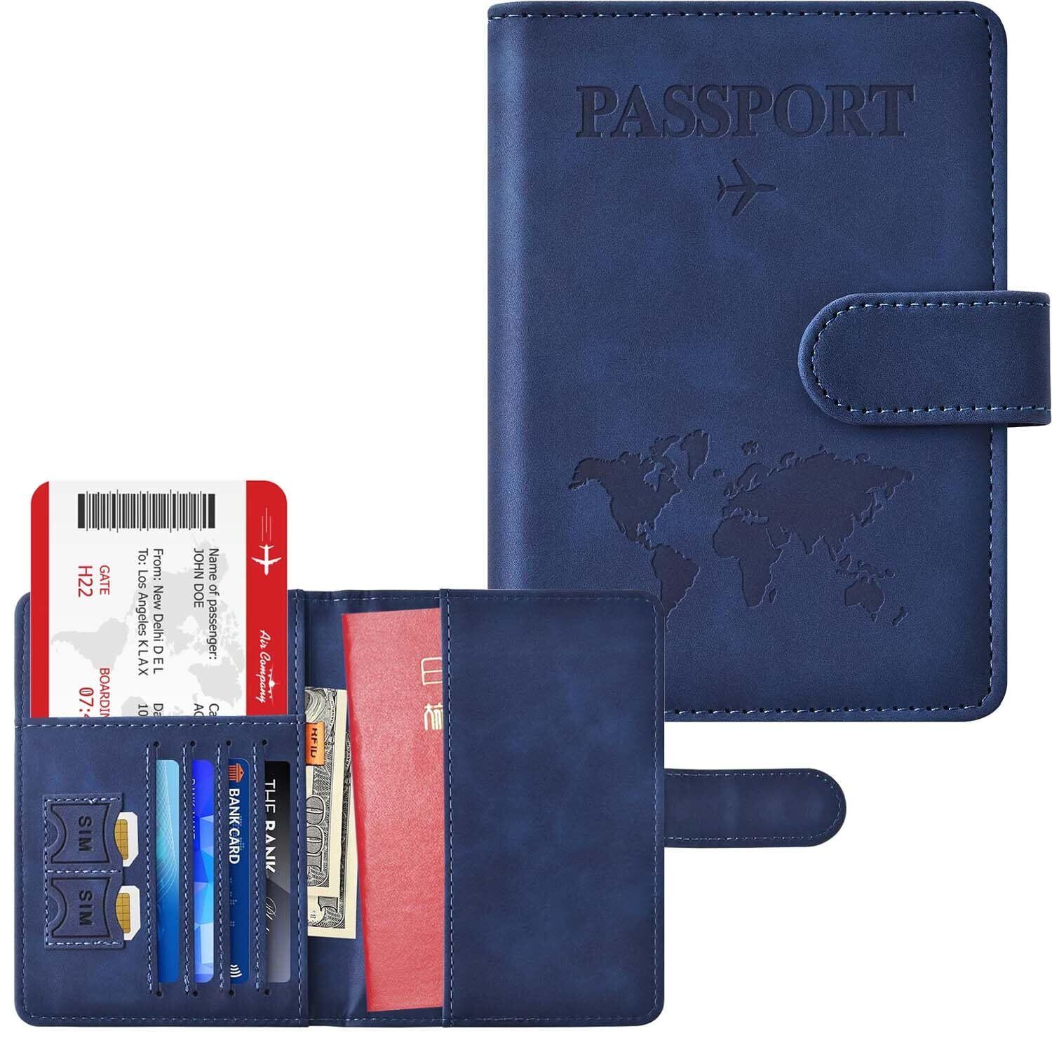 【人気商品】[Hueapion] パスポートケース スキミング防止 パスポートカバー 多機能収納ポケット パスポート カードケース ラベルウォレット 高級PUレザー 軽量 コンパクト おしゃれ 海外旅行 旅行用品 透明パスポートカバー付き (濃いブルー-タイプ2) | gsmshop