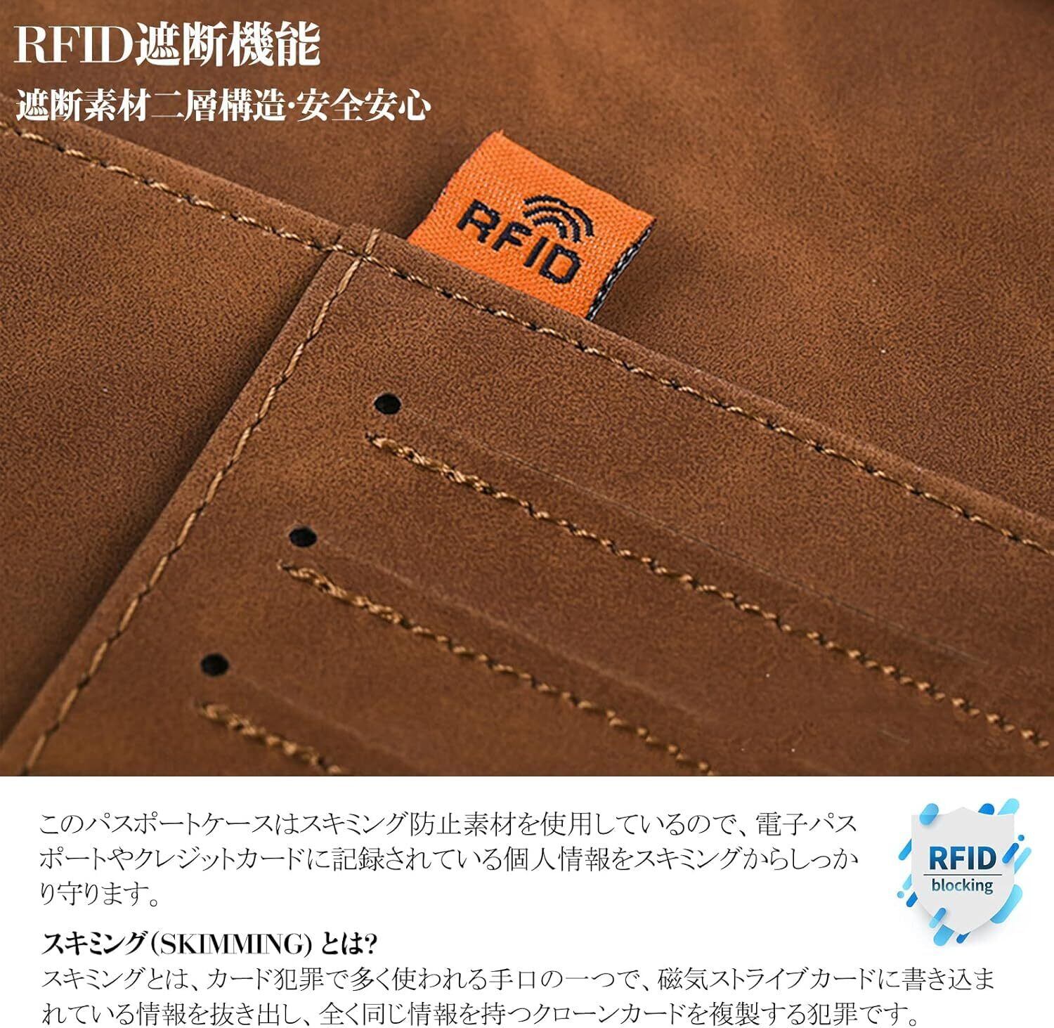 【スキミング防止機能搭載】このパスポートケースはスキミング防止素材を使用しているので、電子パスポートやクレジットカード、キャッシュカードなに記録されている個人情報をスキミングからしっかり守ります