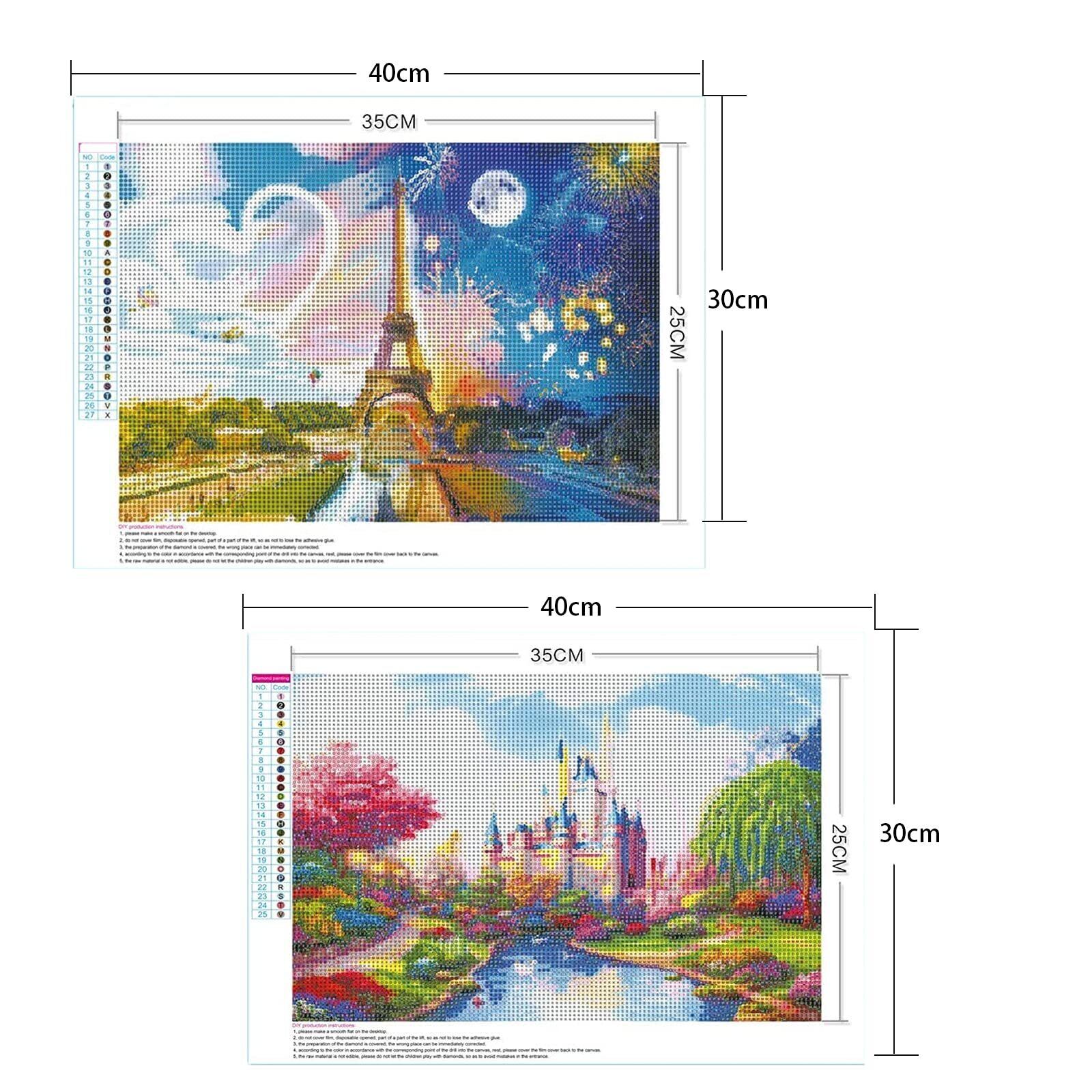 2枚セット 5Dダイヤモンドアート キット ダイアモンドビーズ絵画キット DIY・手作り絵画手芸キット 5D モザイクアート ハンドメイド かわいい 芸術品 装飾 ダイヤモンド塗装 全面貼り付けタイプ 30x40cm(城と塔)