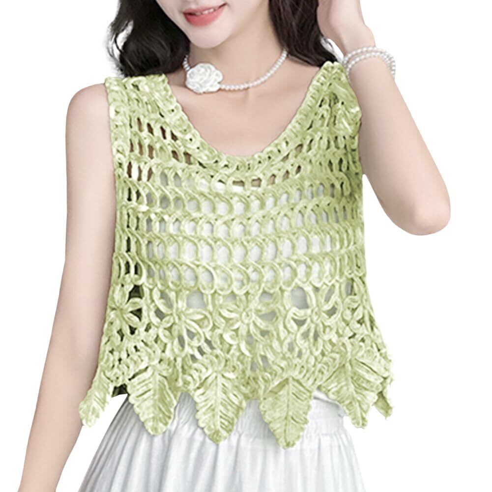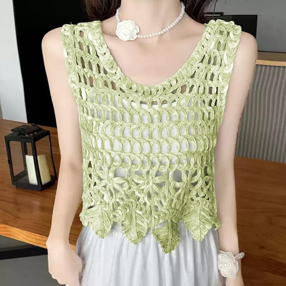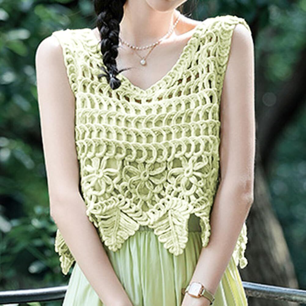 [Ladyangel] ニットベスト レディース チョッキ 透かし編み トップス 絞り染め Uネック 重ね着 レイヤード風 ゆったり 体型カバー 着痩せ 通気 花柄 女性らしい おしゃれ カジュアル 夏