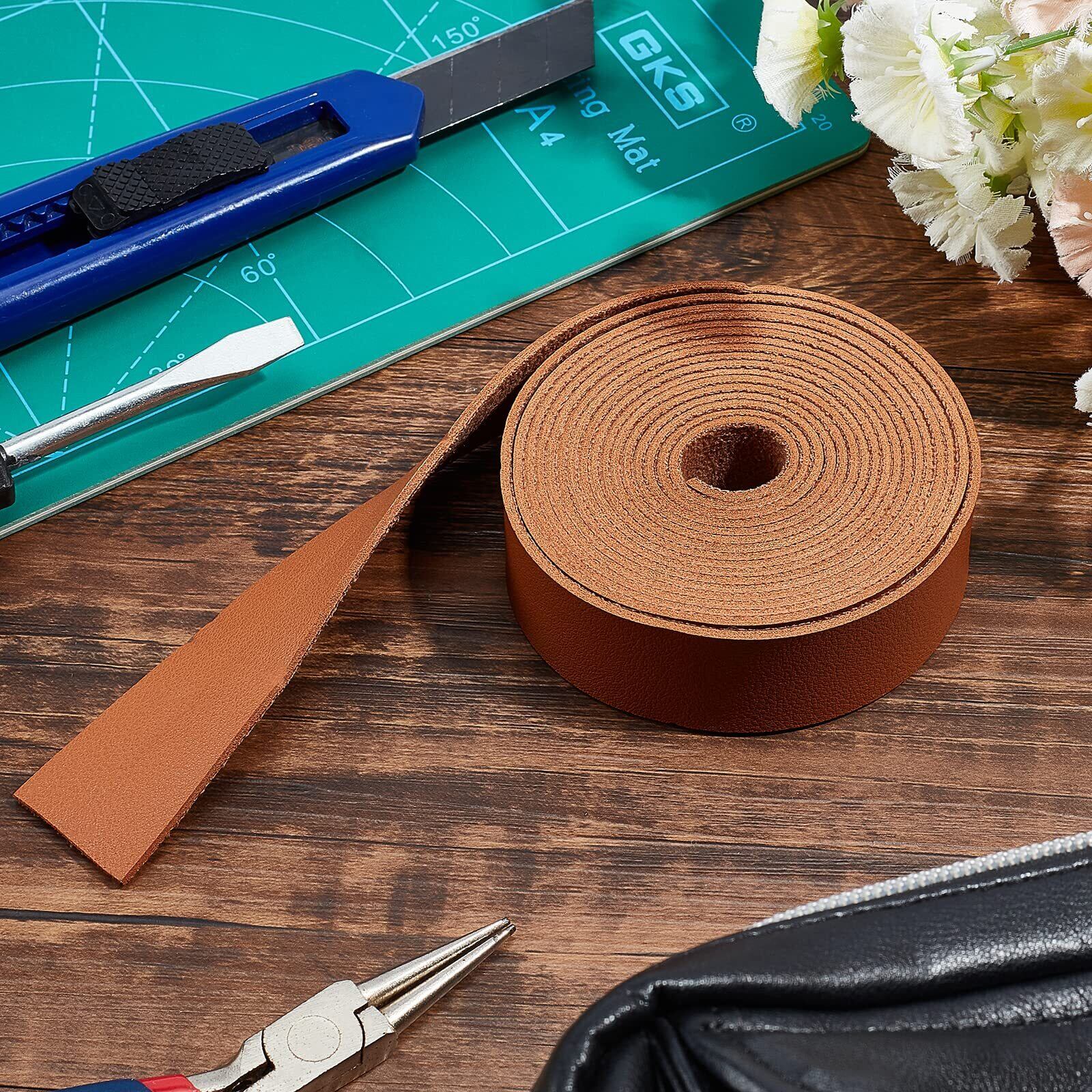 【特価セール】BENECREAT 2.5mx25mm レザーテープ ロール ライチ模様 片面レザー 合皮 生地 厚さ1.8mm 柔らかい バッグ 革小物作り ソファー 車シート補修 張り替え フェイクレザー 手芸材料 (茶色) | gsmshop