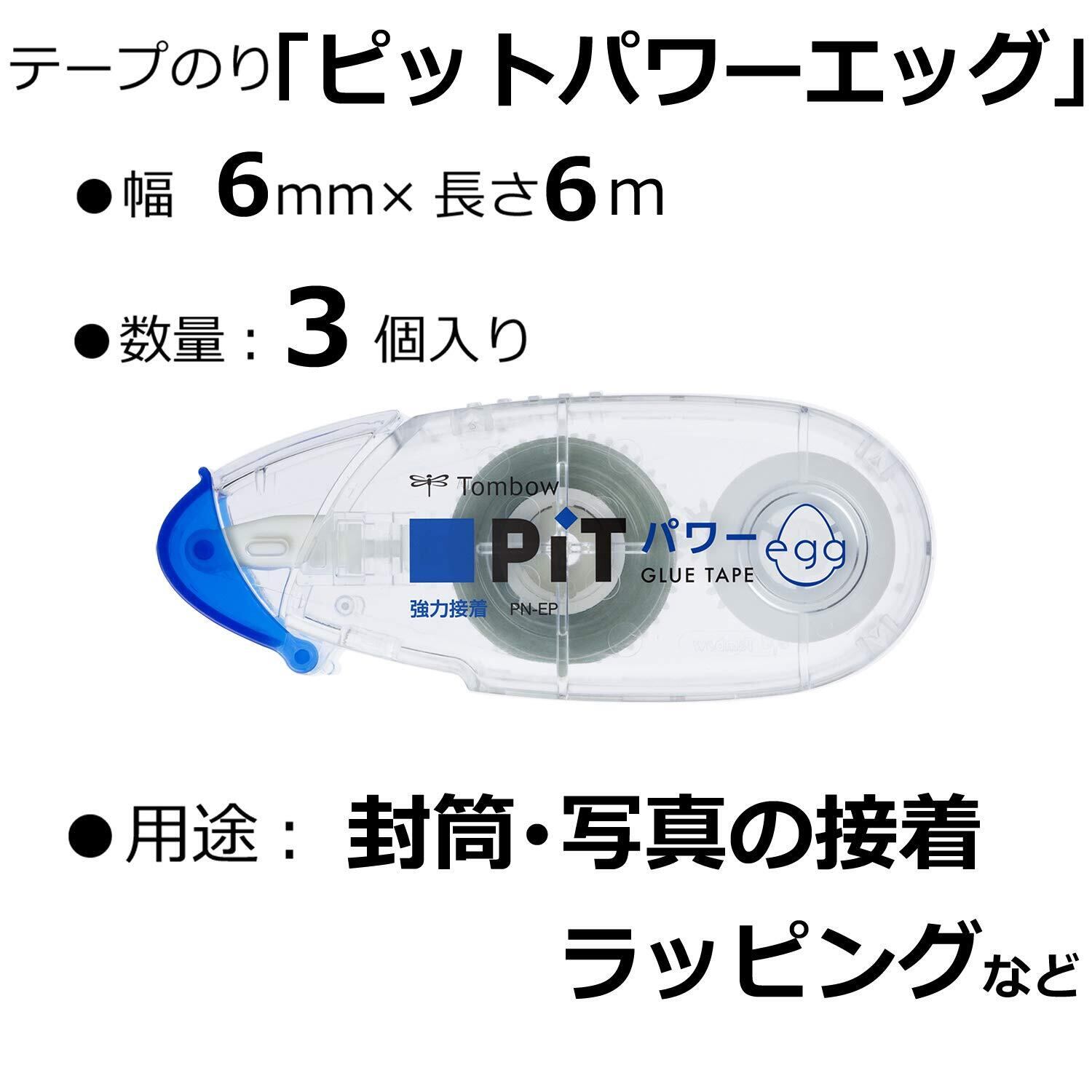 トンボ鉛筆 テープのり 強粘着 PiT パワーエッグ (使い切りタイプ) 6mm×6m 3個 HPA-313 (PN-EP×3)