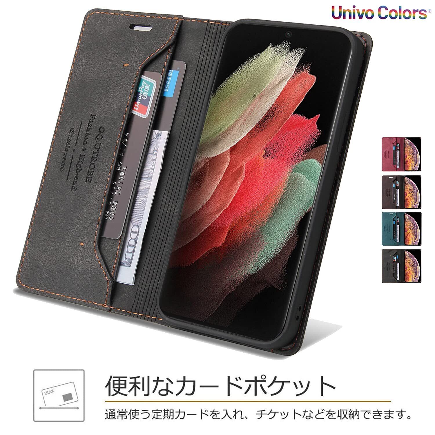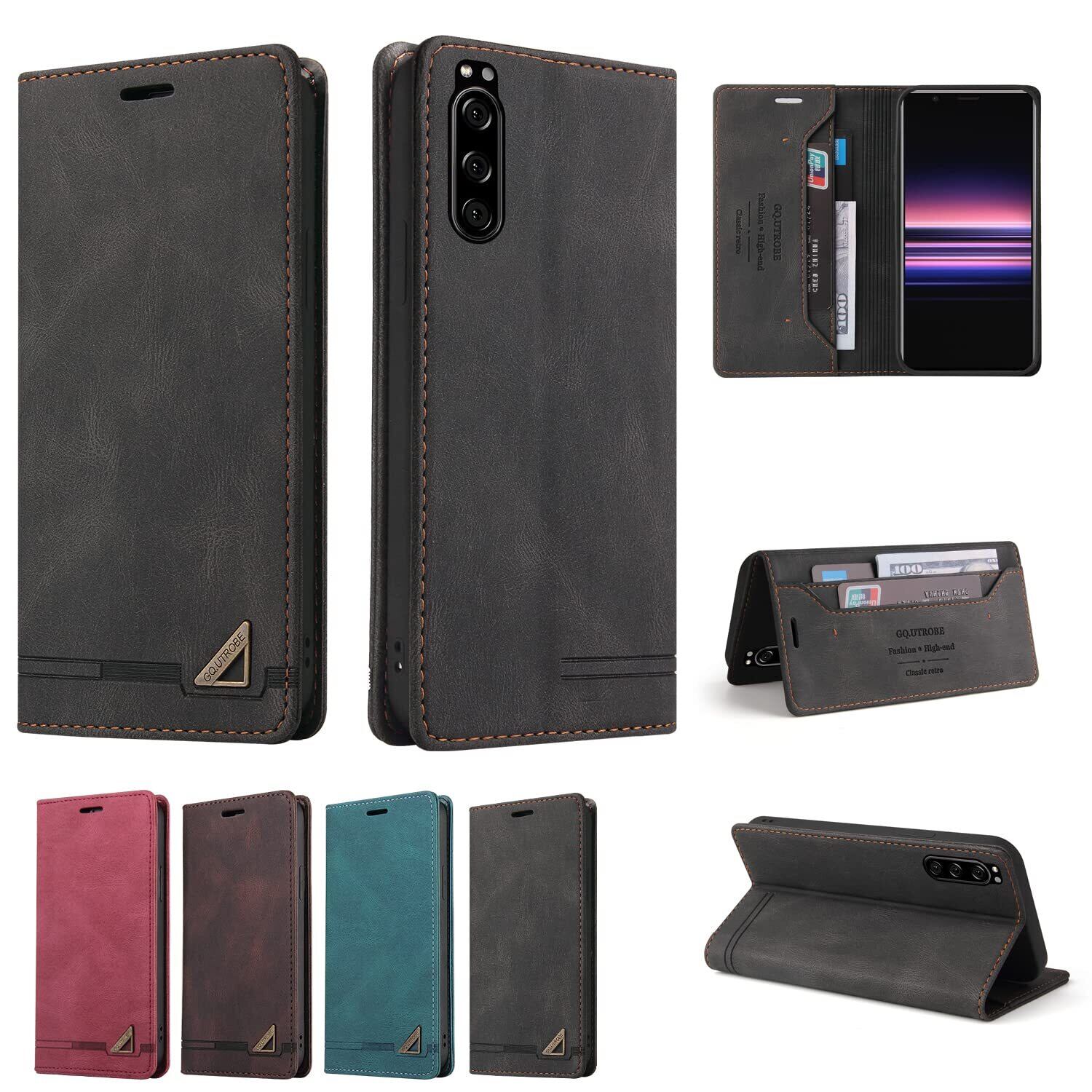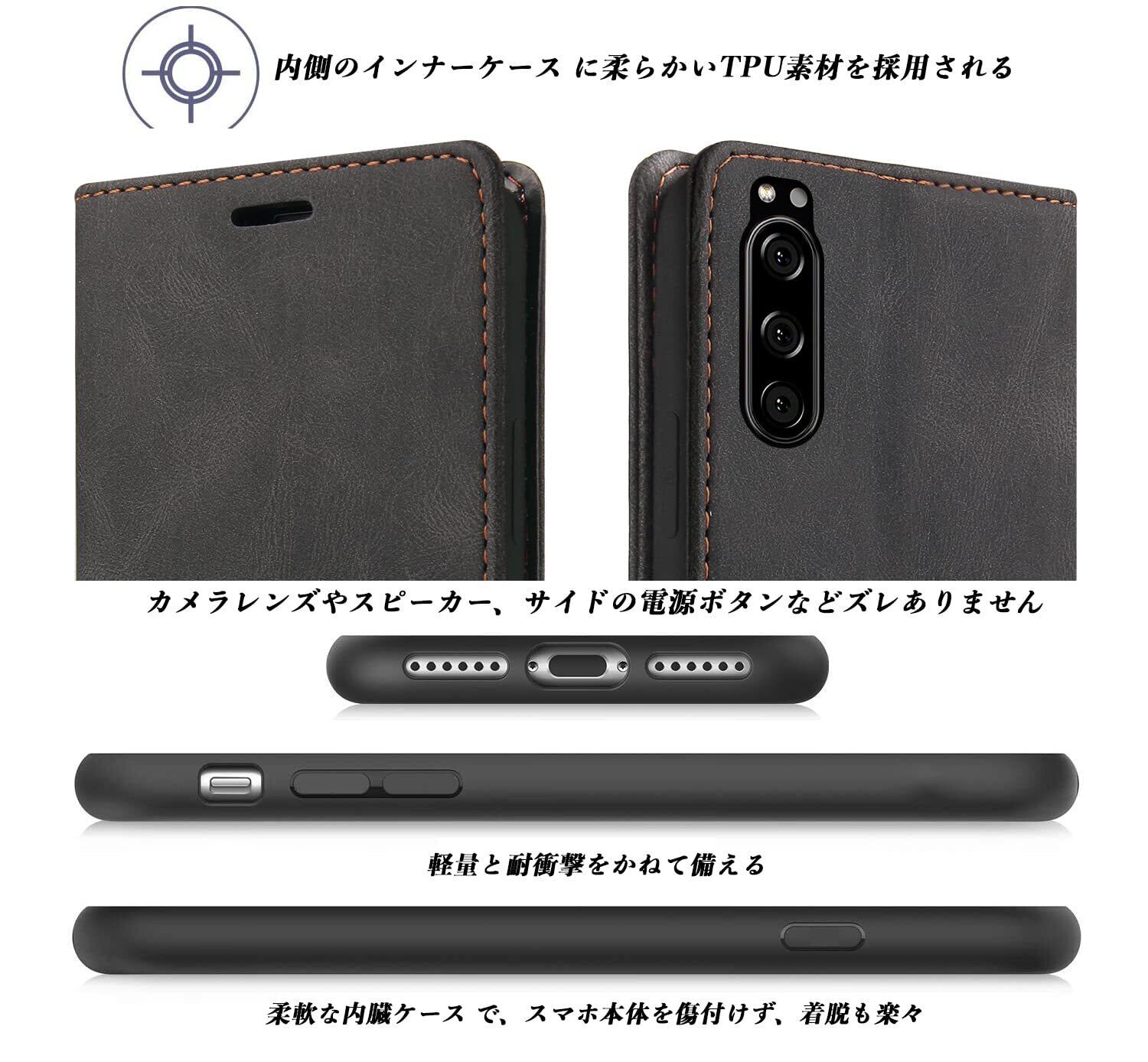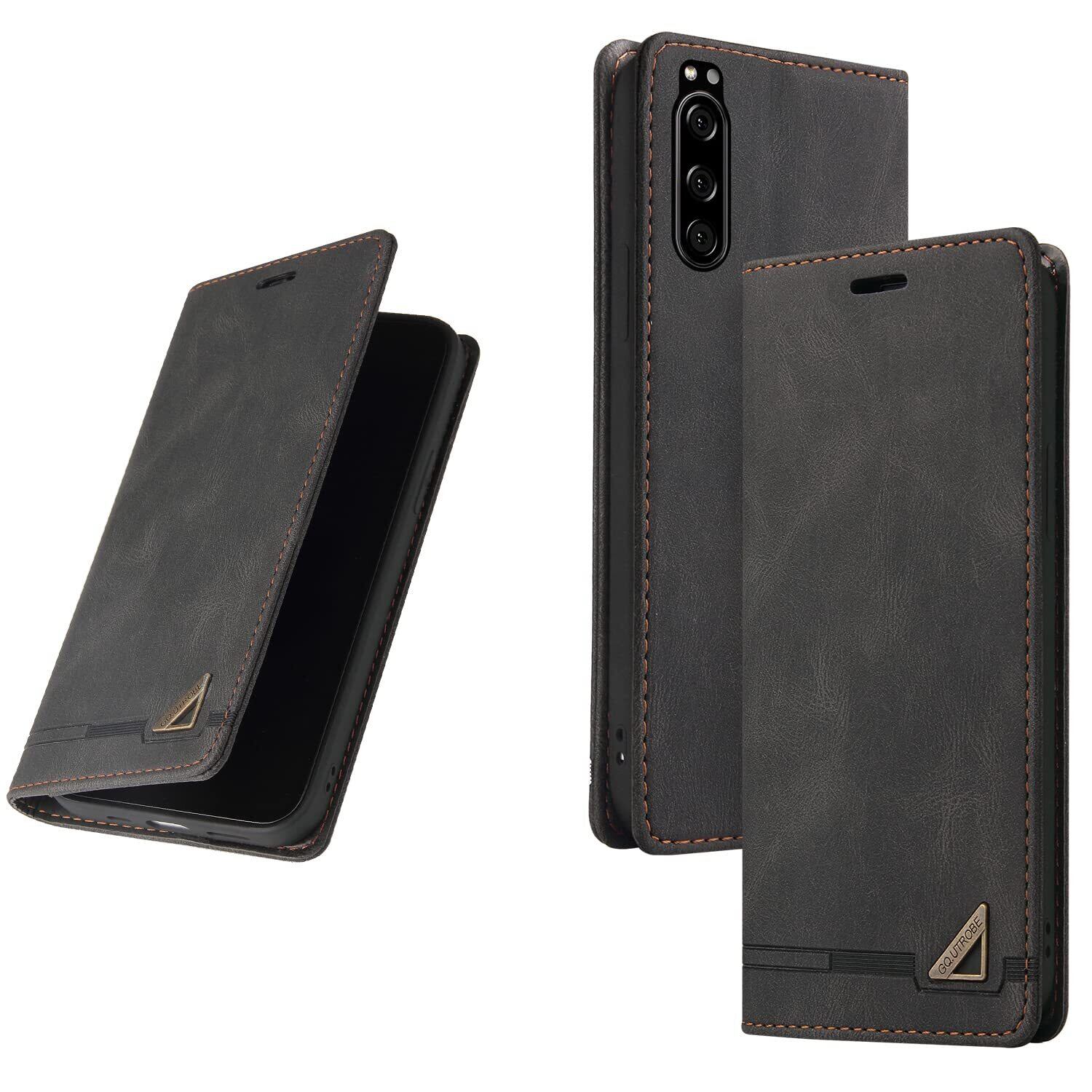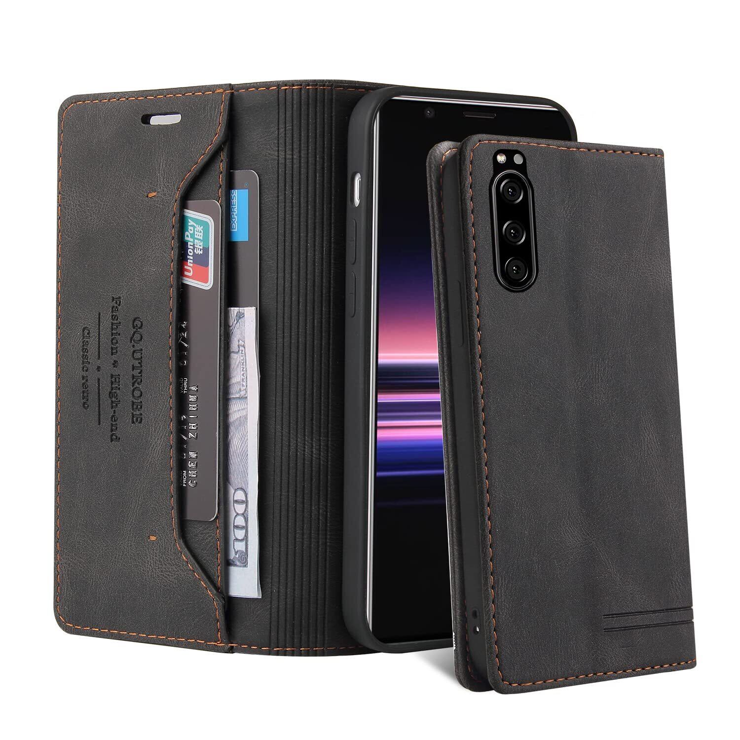 UnivoColors Sony Xperia 5( SO-01M / SOV41 ) 手帳型ケース 高級合皮 スタンド機能 カード収納 マグネット式 TPUソフトカバー 全面保護 カメラ保護 衝撃吸収 RFIDブロッキング おしゃれ カバー(ブラック)