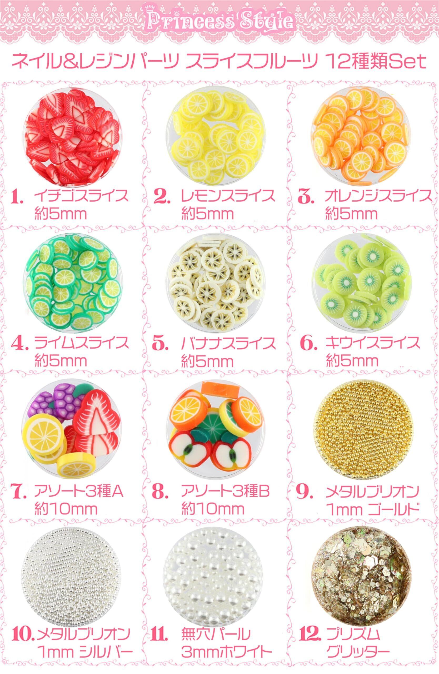 Princess-style スライスフルーツ ネイル&レジン プリズムグリッター入り 12個セット