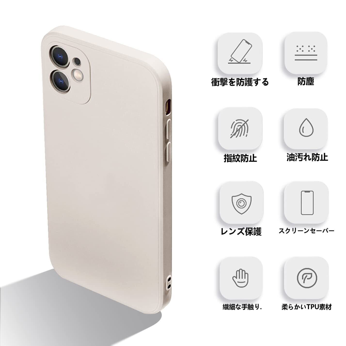iphone12 ケース アイフォン12 カバー マット感 液体シリコン 耐衝撃 指紋防止 レンズ保護 ソフト ワイヤレス充電対応(ホワイト)