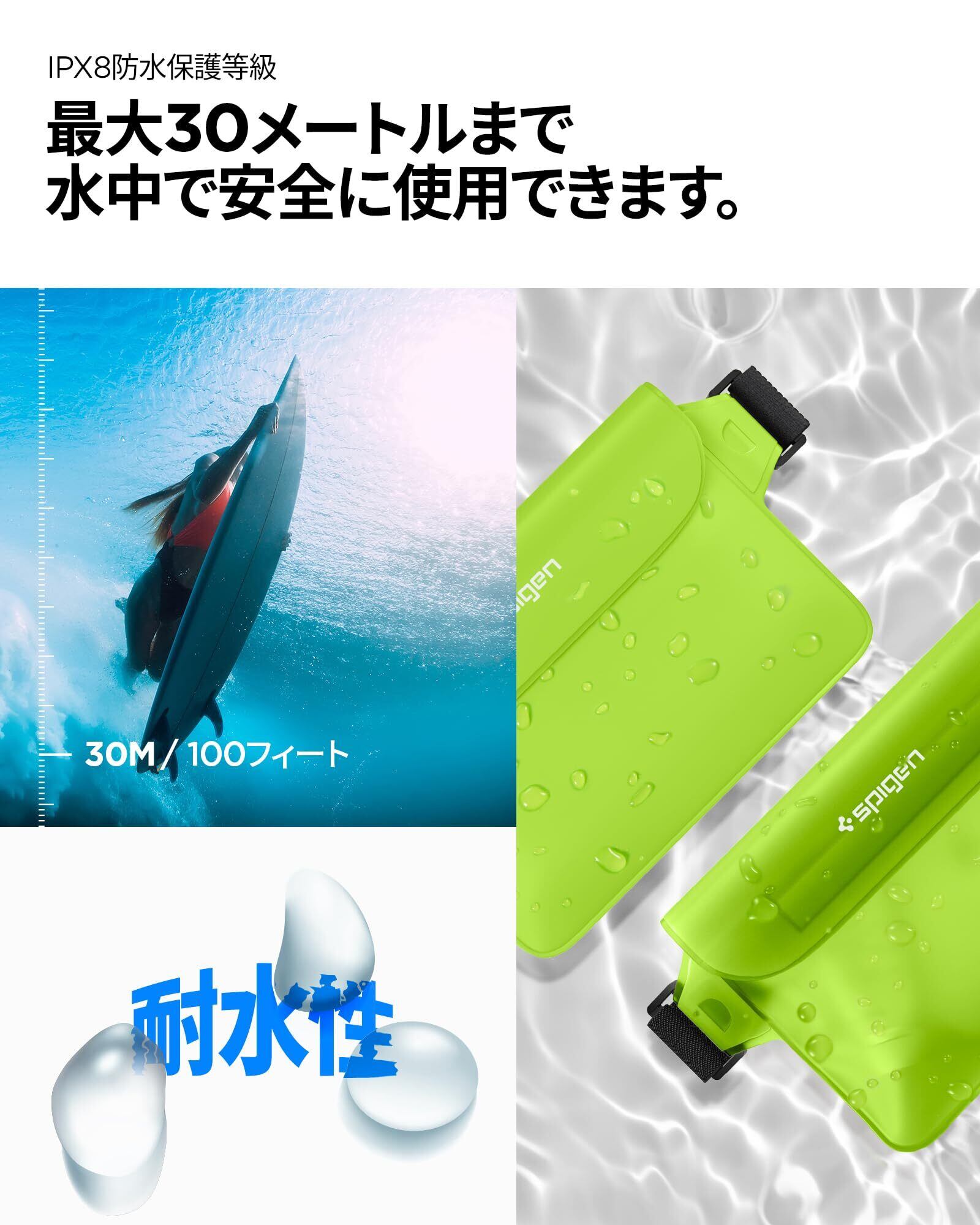 【特価商品】Spigen 防水ケース 小物 防水ポーチ 2個セット 完全防水 IPX8認証 防水ケース 海 プール アウトドア スマホ 三重チャック ベルクロ PVC 大容量 ウエストポーチ 防水バッグ AMP06023 (サボテン・グリーン) | gsmshop