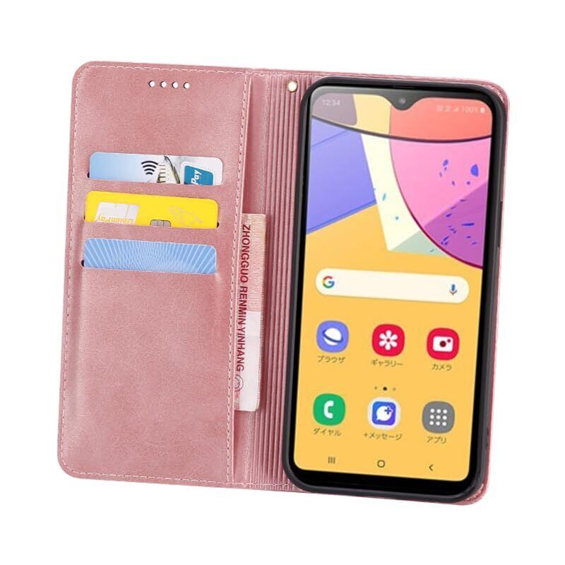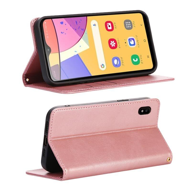 Galaxy A20 SCV46/ Galaxy A21 SC-42A ケース 手帳型 カバー PUレザー カード収納 財布型 耐衝撃 ケース マグネット スタンド機能付き 5色(Galaxy A20 SCV46/ Galaxy A21 SC-42A ケース 手帳型) (ライトローズゴールド)