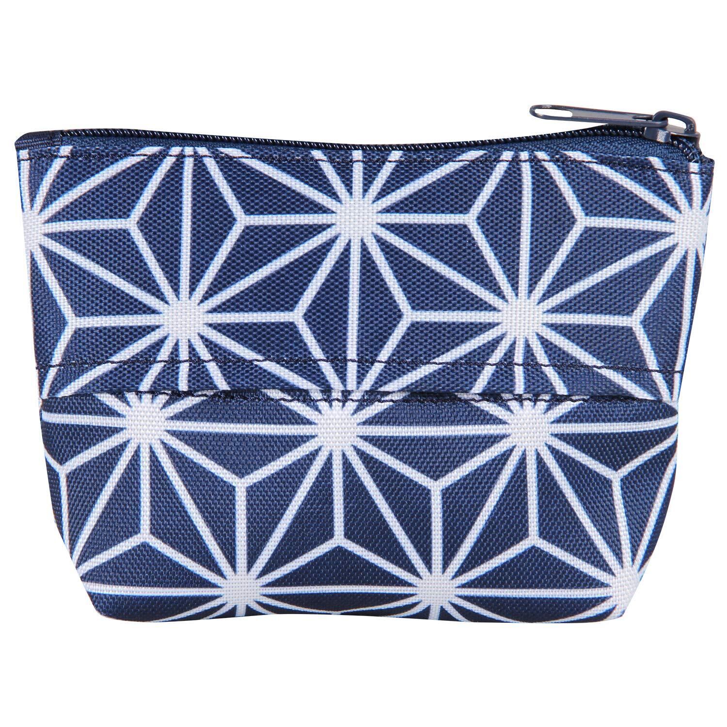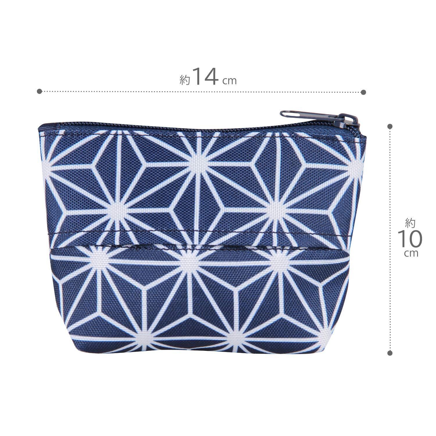 【商品仕様】:サイズ/約幅14×長さ10×底部マチ4cm、カラー/ネイビー、柄/麻の葉柄、内容/1個、材質/ポリエステル