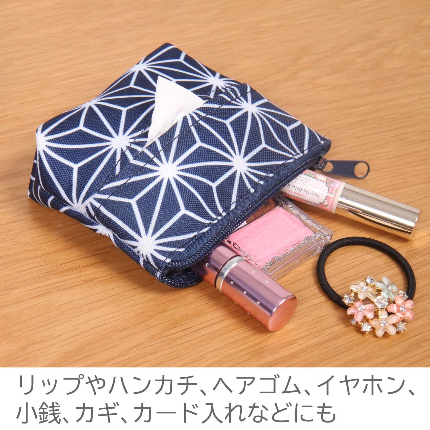 アストロ コスメ ポーチ ネイビー 和柄 麻の葉柄 ティッシュケース 小物入れ コンパクト 880-12