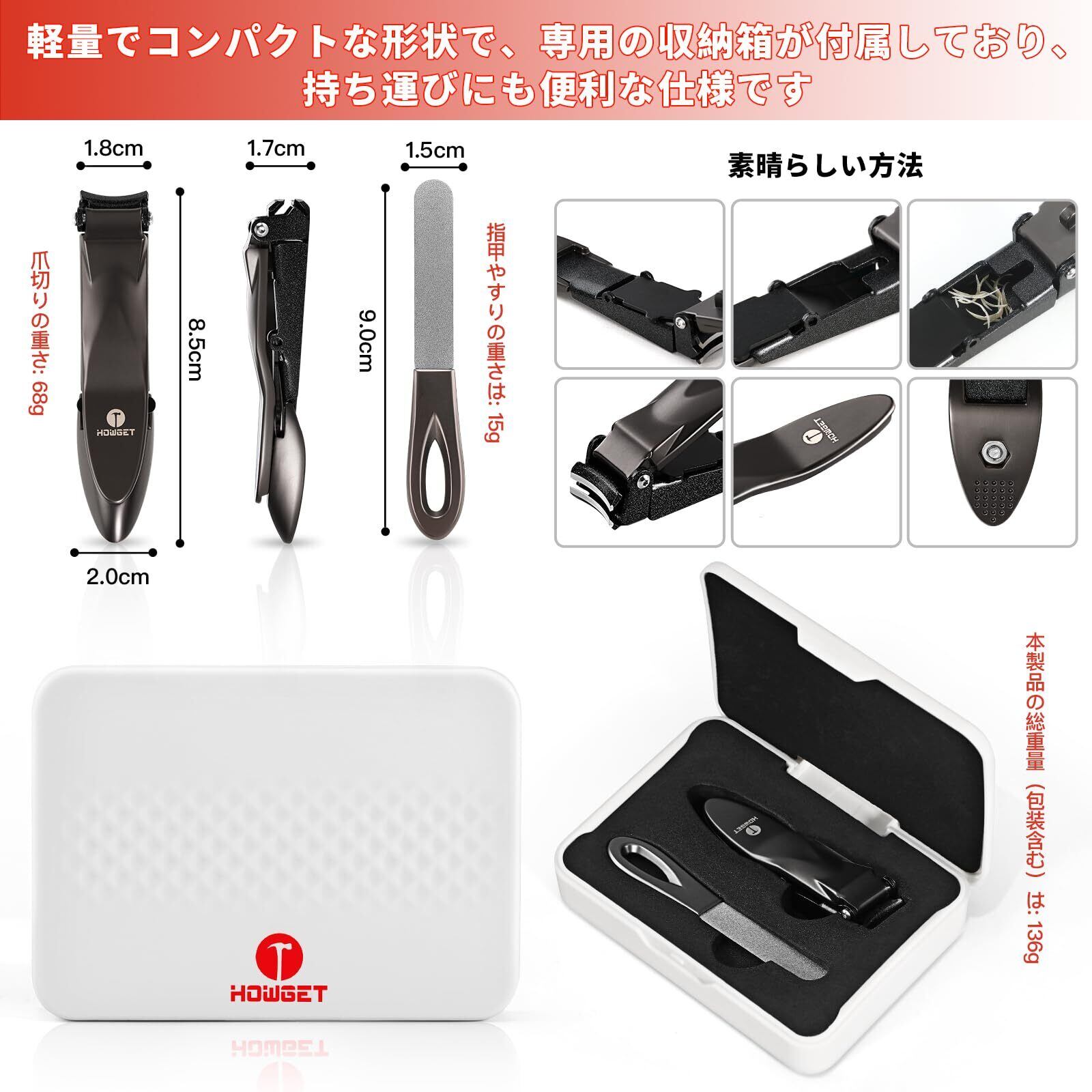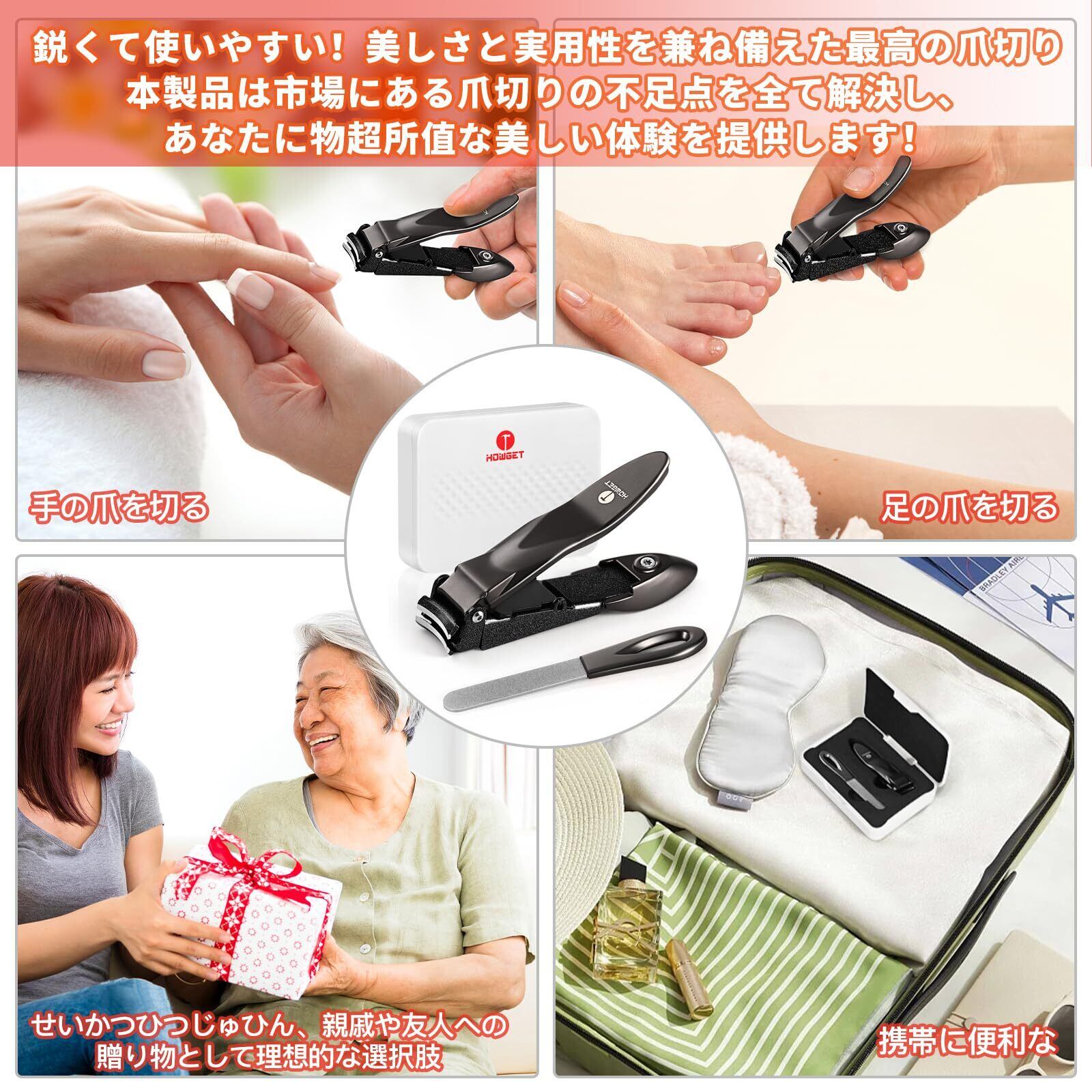 HOWGET 爪切り つめきり 飛び散り防止 切れ味いい 手足用 男女兼用 には 高級爪やすり付き 専用の収納ケースが 付属しています 簡単に収納でき (銅)