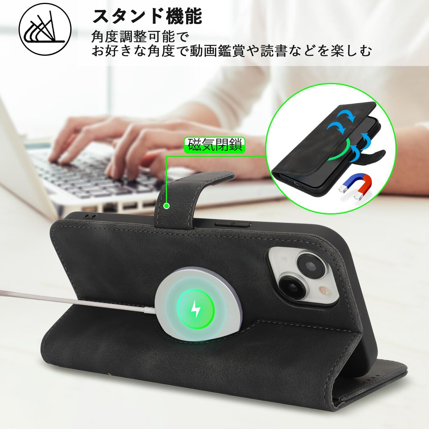 【新着商品】【Hamany】 いphone15plus ケース Magsafe対応 ワイヤレス充電 いphone14plus ケース 手帳型 カード収納 スタンド機能 マグネット式 iphone 15 plus ケース 耐衝撃 耐久性 耐摩擦 アイフォン14プラス ケース 手帳型 マグネット式 レザー -スエードの質感ブラック | gsmshop