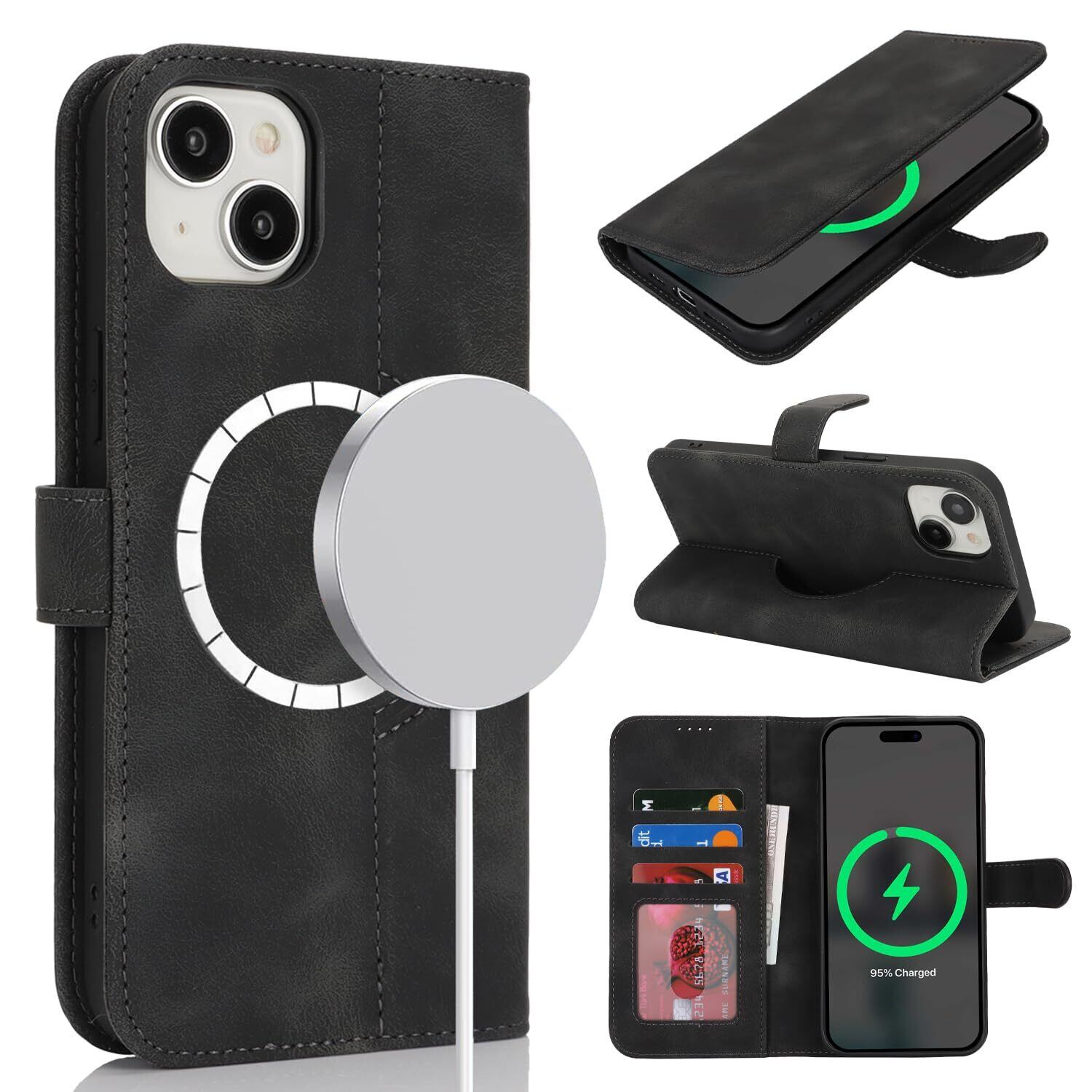 【Hamany】 いphone15plus ケース Magsafe対応 ワイヤレス充電 いphone14plus ケース 手帳型 カード収納 スタンド機能 マグネット式 iphone 15 plus ケース 耐衝撃 耐久性 耐摩擦 アイフォン14プラス ケース 手帳型 マグネット式 レザー -スエードの質感ブラック