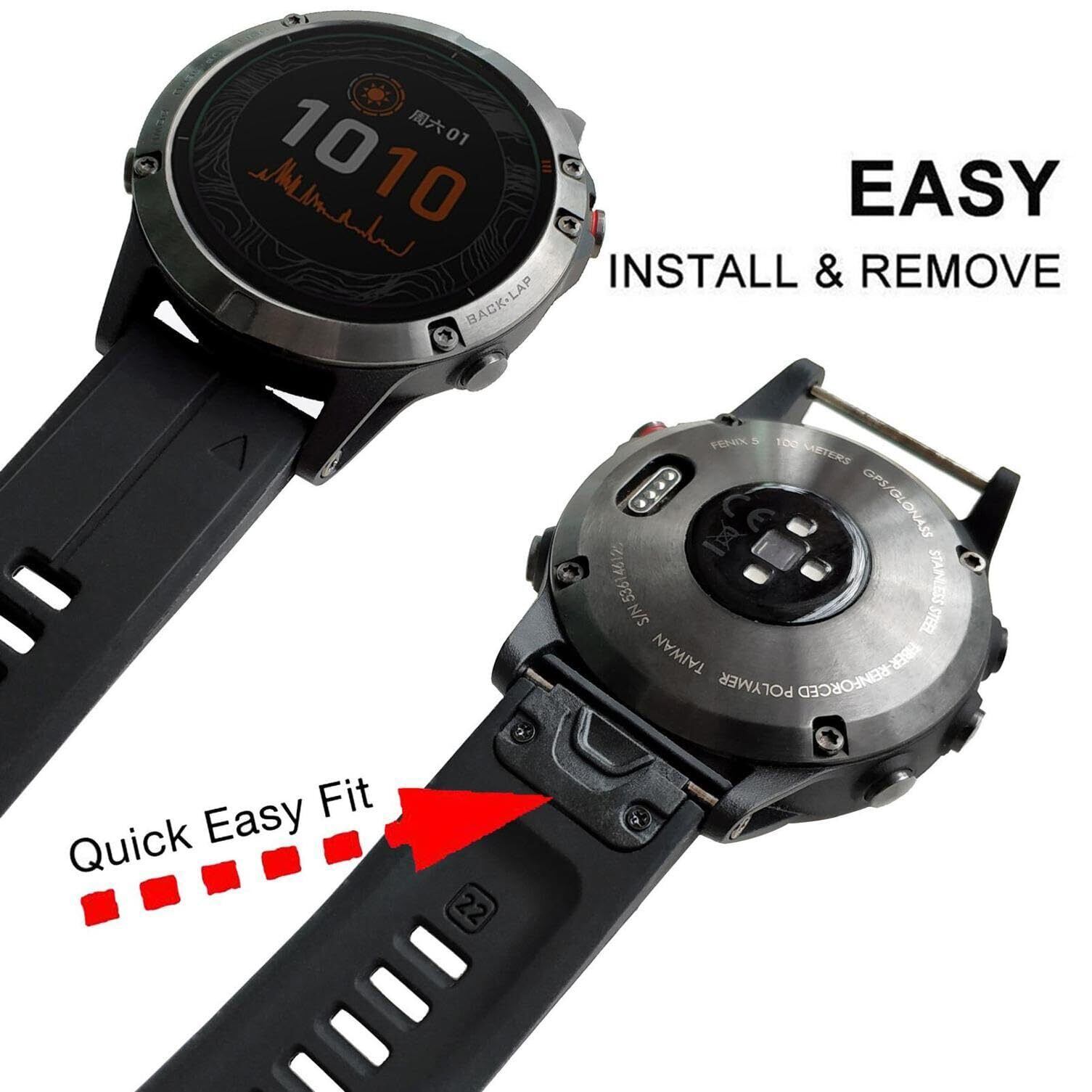 【対応機種】に適用するFenix 8 47mm, epix Pro 47mm, Fenix 7 Solar / Fenix 7 Sapphire Solar, EPIX 2, Fenix 5/Fenix 5 Plus, Fenix 6/ Fenix 6 Pro/Fenix 6 Sapphire, Instinct 2 Solar, Approach S60/ S62 /S70 47mm, Quatix 5 /Quatix 6, Instinct/Instinct Tactical/Instinct Tide/Instinct Esports, Forerunner 955, Forerunner 935/Forerunner 945, MARQ Expedition/Athlete/Driver/Aviator/Captain/Golfer, 元のストラップを確認してください。「QuickFit22」とマークされている場合は、このストラップも適しています。