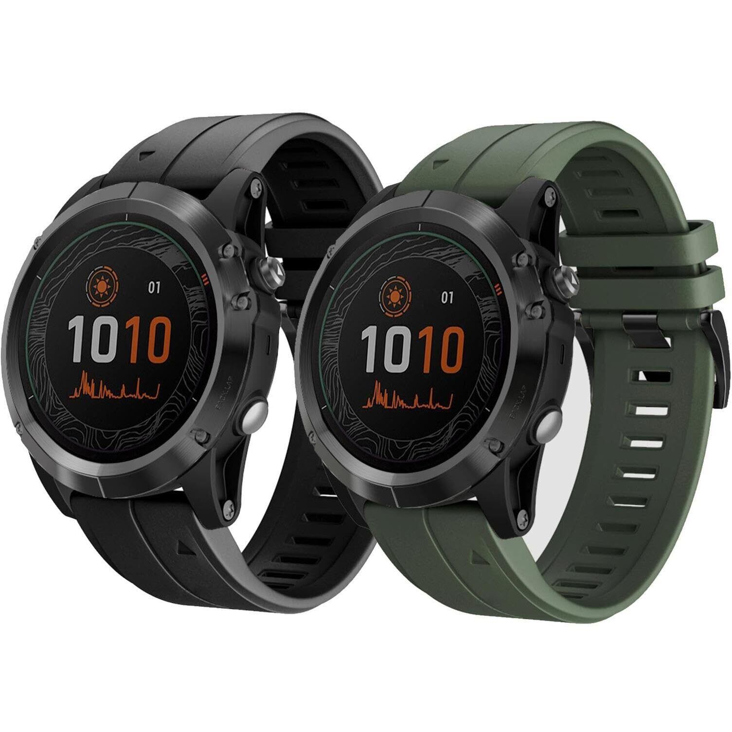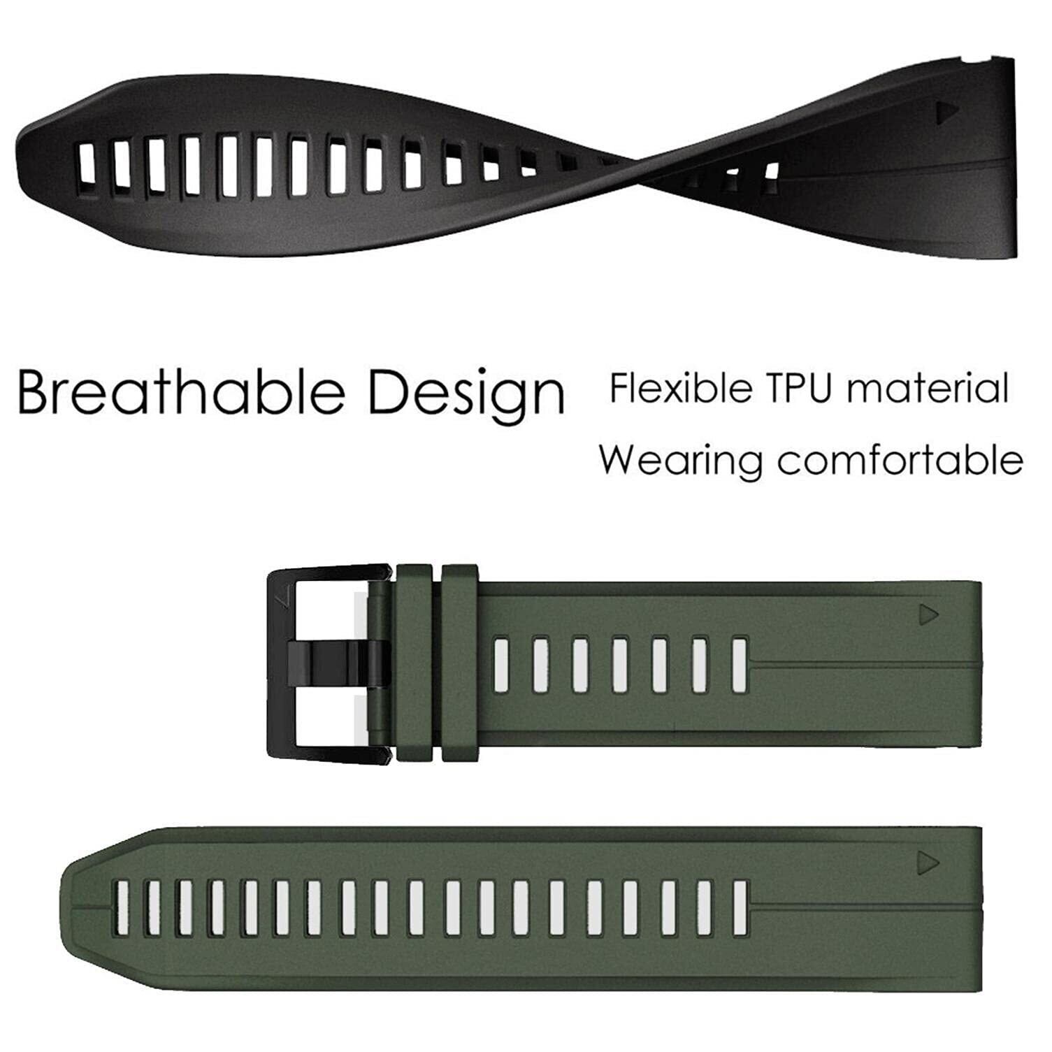[Ahayo] QuickFit 22mm 2パック防水替えバンド に適合するガーミンFenix 8 47mm / epix Pro 47mm / Instinct 2 Solar, 留め金具の シリコン スポーツ ベルト用のGarmin Fenix 7/Fenix 6/ Approach S62 /S70 47mm (黒と緑)
