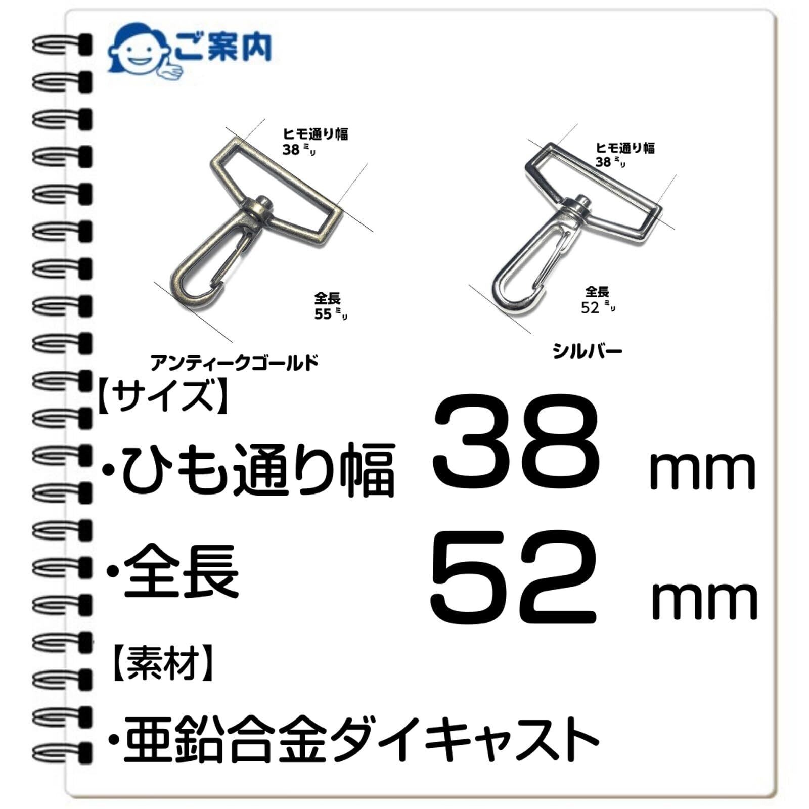 ヒモ通る幅 38mm・全体 52mm・素材 亜鉛合金ダイキャスト・販売個数個5個