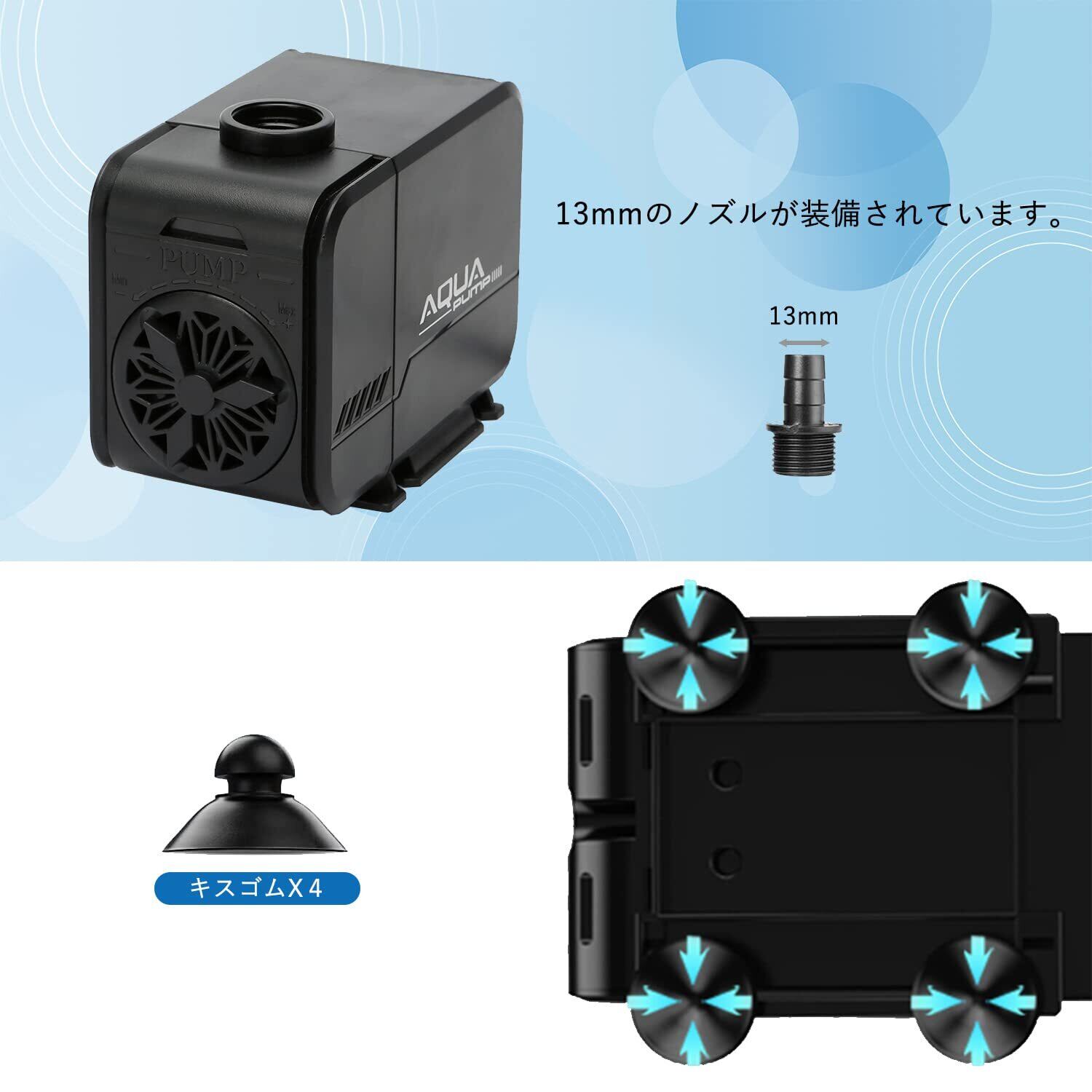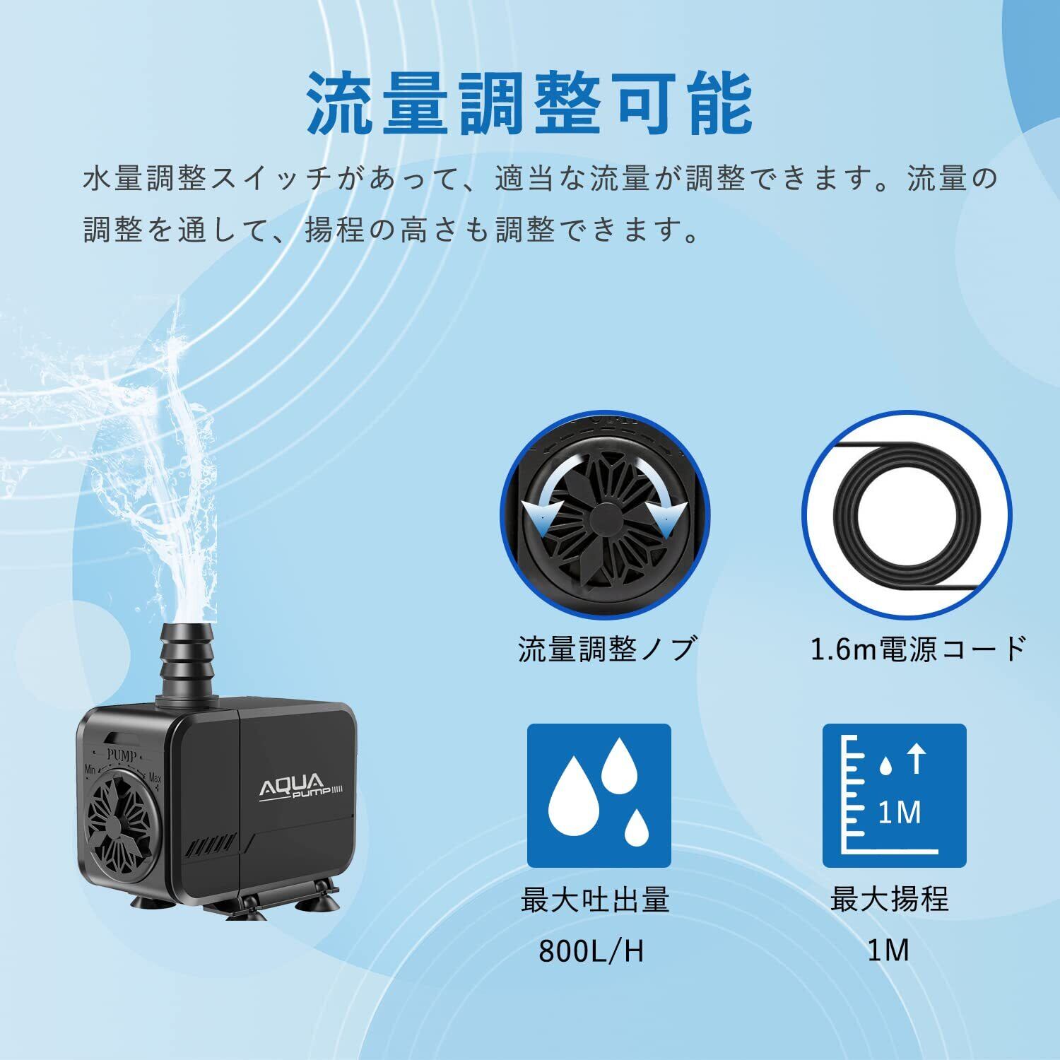 THYESCOM 水中ポンプ 小型ポンプ 吐出量800L/H 揚程1M 給水ポンプ 静音設計 排水ポンプ 100V 水槽水循環ポンプ 吐出量調整可能 ミニポンプ ウォーターポンプ 水耕栽培・水族館水換え・養殖場適用 8W