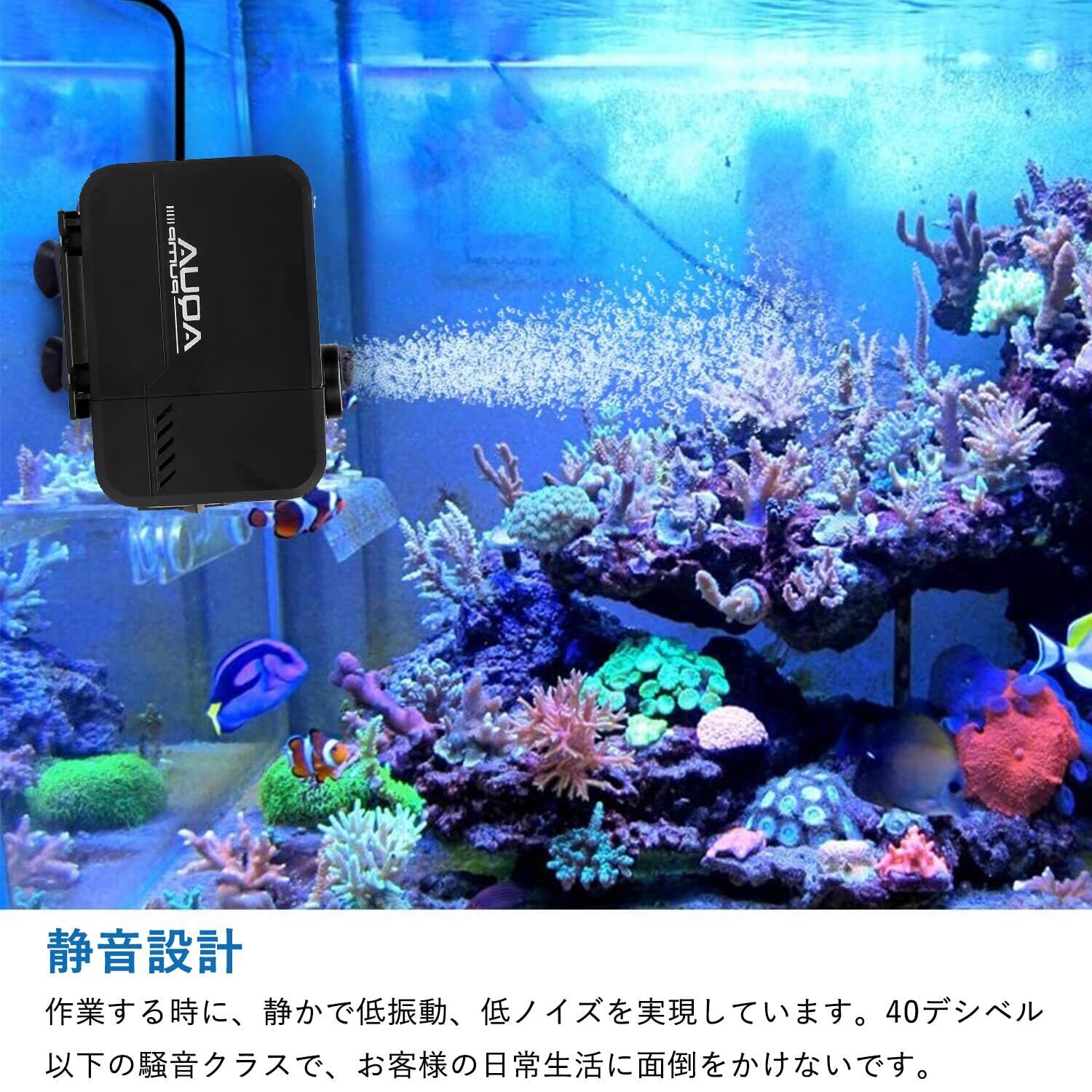 【吸盤付き】小型ポンプの底部に4つ吸盤が付いていますので、水槽の底部にしっかり設置だけでなく、水槽のタンク壁に簡単に設置できます。