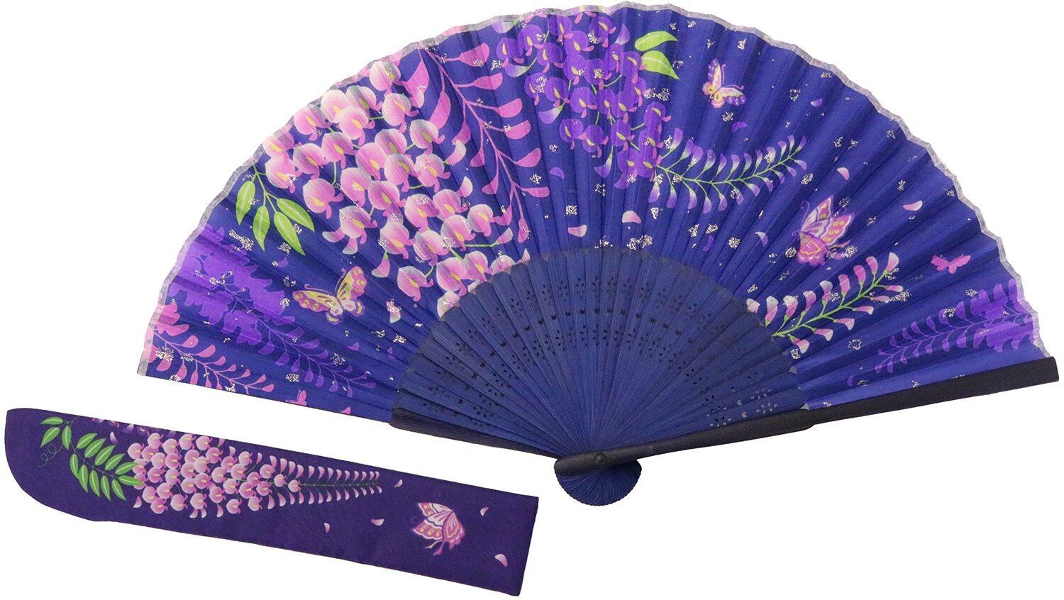 京佑(Kyoyu) 扇子 ケース 袋 入れ セット 和装 和風 和柄 浴衣 シルク 花柄 藤 紫