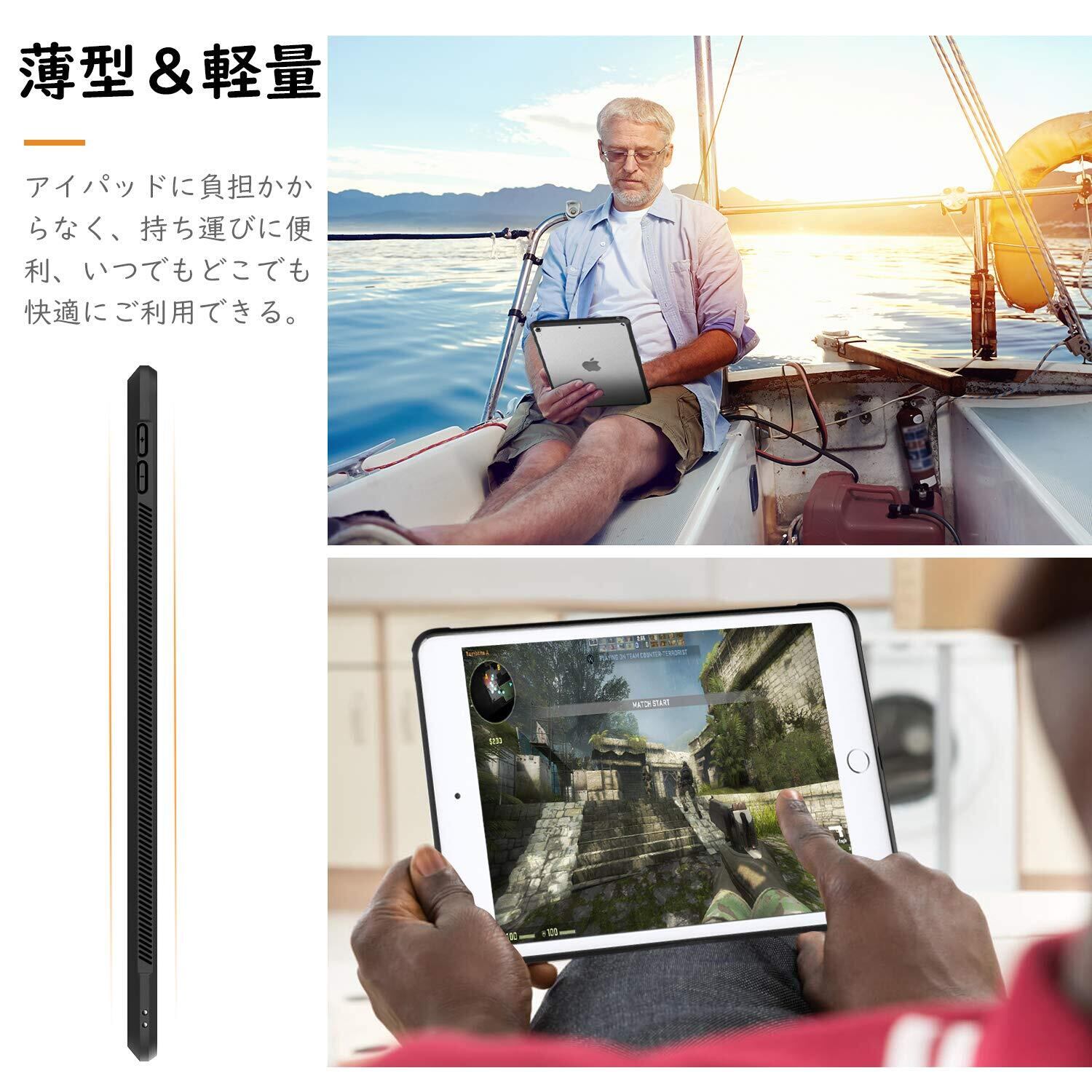 【超薄型】 超軽量、超薄型を備えたiPad ケース、自宅でも旅行中でも持ち運びが便利です。機器にぴったり合わせて、とりつけたり、とりはずしたりすることが簡単にできます。
