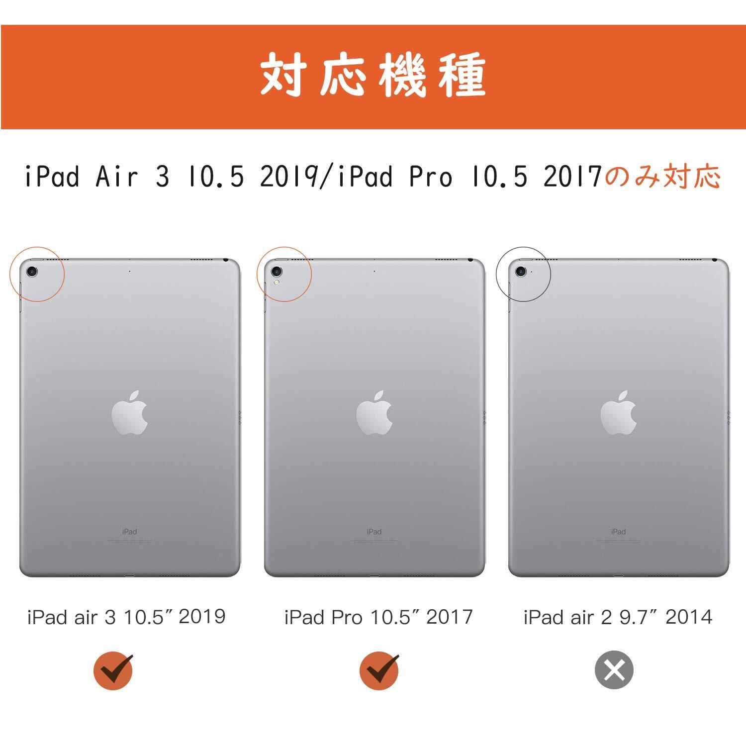 【対応機種】 New iPad Air 2019(10.5インチ、第3世代)(モデル:A2152、A2123、A2153、A2154)とiPad Pro 10.5インチ2017 (モデル:A1709 / A1701)にカスタム設計しており、他のモデルには適用しません。購入する前にタブレットの機種を確認してください。