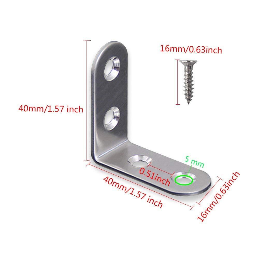 BESTU アングルブラケット 40*40*16mm 棚受け ステンレス アングル L字型 ステンレスネジ コーナーブレース 接合金具 補強 直角ブラケット 汎用 専用ネジ付き 12個入