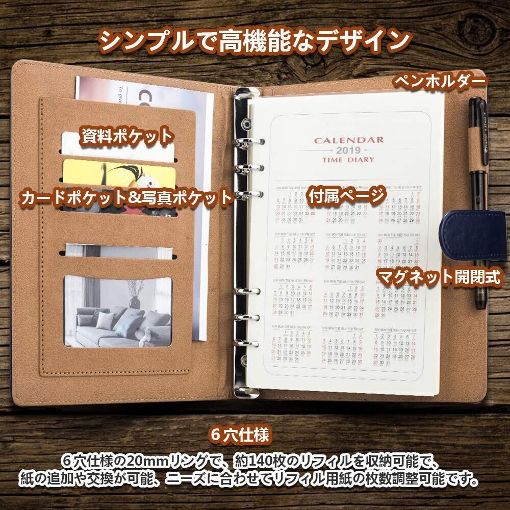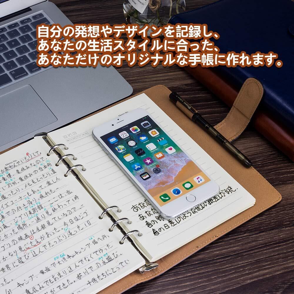 【細部をこだわり】リフィルリング6穴がありますので、誰でも簡単に装着できます(約90枚の用紙を収納可能です)。リングはしっかりして錆びにくいです。用紙数量の増減や用紙位置の調整が簡単に行えます。