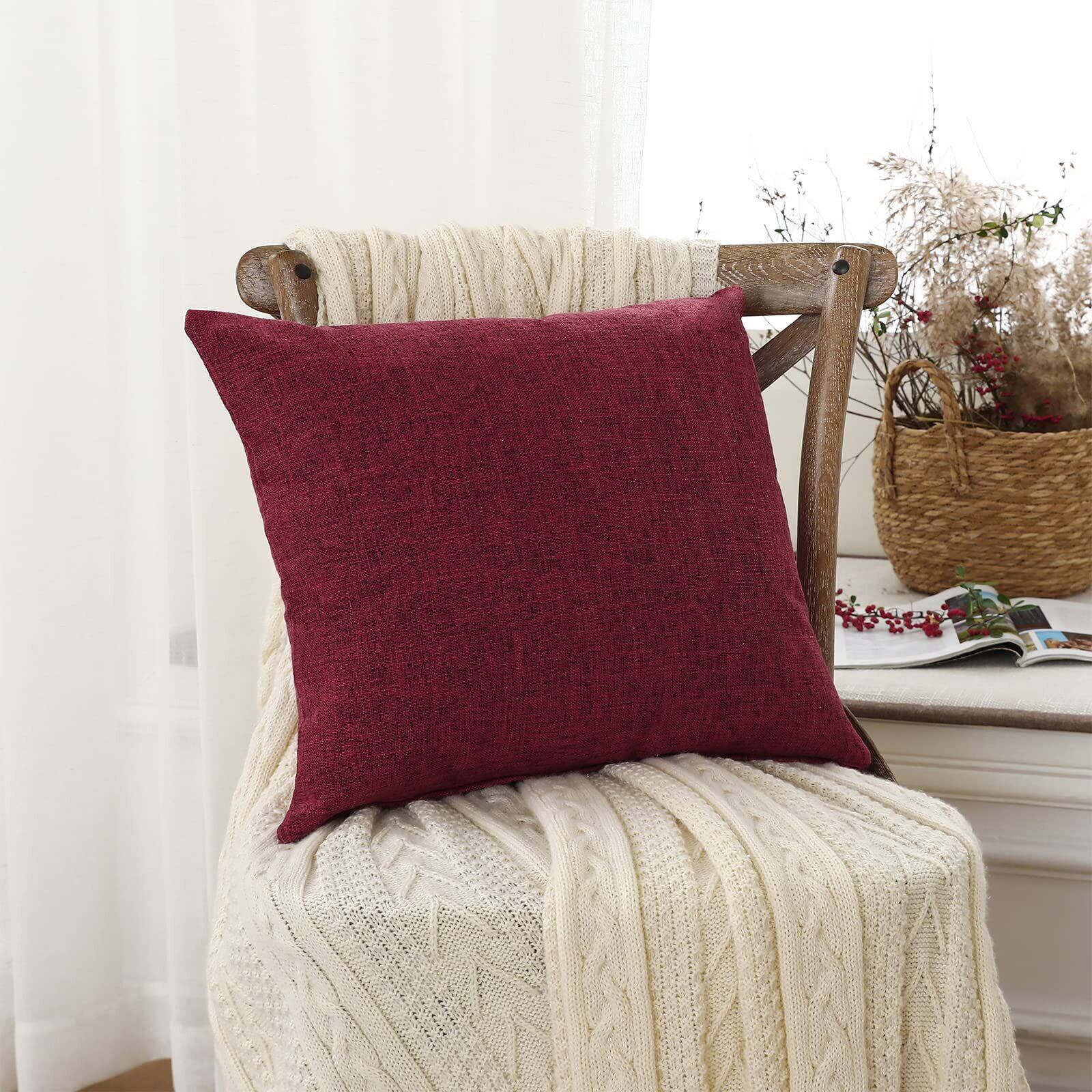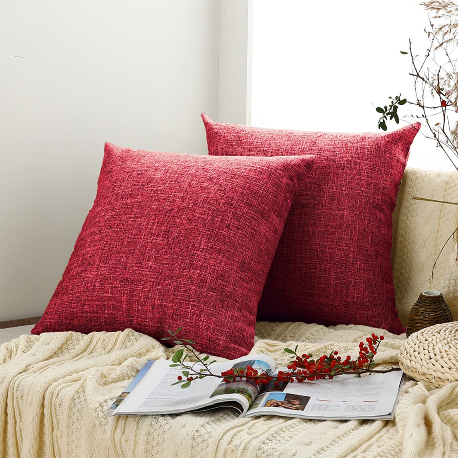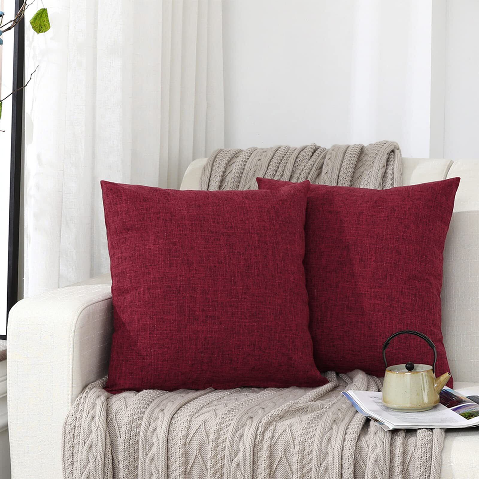 Silky Bunny クッションカバー 45 45cm 北欧 おしゃれ ソファ背当て リネンの質感 座布団カバー 無地 隠しジッパー装飾枕カバー ワイン 2枚セット