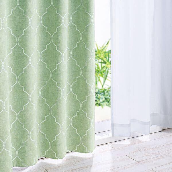 【特価セール】ベルーナ(BELLUNA) カーテン 4枚セット 柄カーテン 4枚組 1級遮光 UVカット 断熱 保温 昼・夜目隠し 節電対策 省エネ 間仕切り 厚地カーテン2枚 レースカーテン2枚 洗える 多機能 厚手 タイル柄 アジャスターフック付 洗濯可 タッセル付 グリーン グレー 幅100 (タイルグリーン 100×178cm 555355-005) | gsmshop