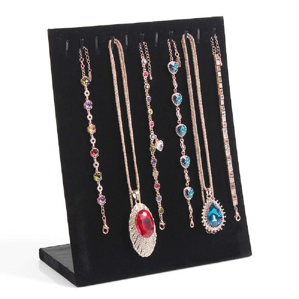 【新春セール】ネックレススタンド L型 アクセサリースタンド 11本用 ディスプレイ ベロア調 ジュエリー トレイ ジュエリーケース ジュエリーボード ネックレスケース バレンタインギフト ネックレス整理 | gsmshop