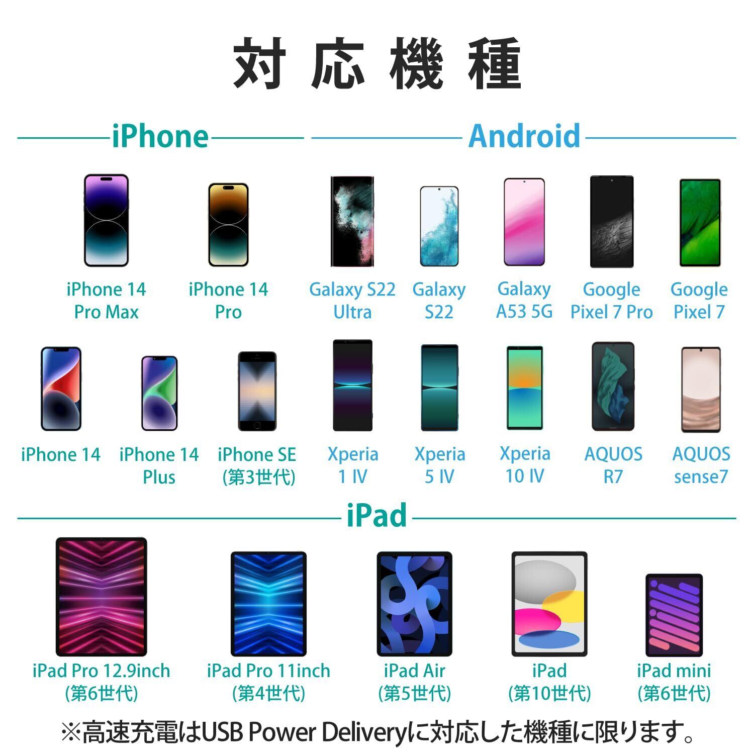 ■ 対応機種:USB Type-C(TM)(USB-C(TM))ポートからUSB Power Delivery 3.0(20W)の規格内で充電が可能な機器。※別途各端末のコネクタに対応したケーブルを準備する必要あり