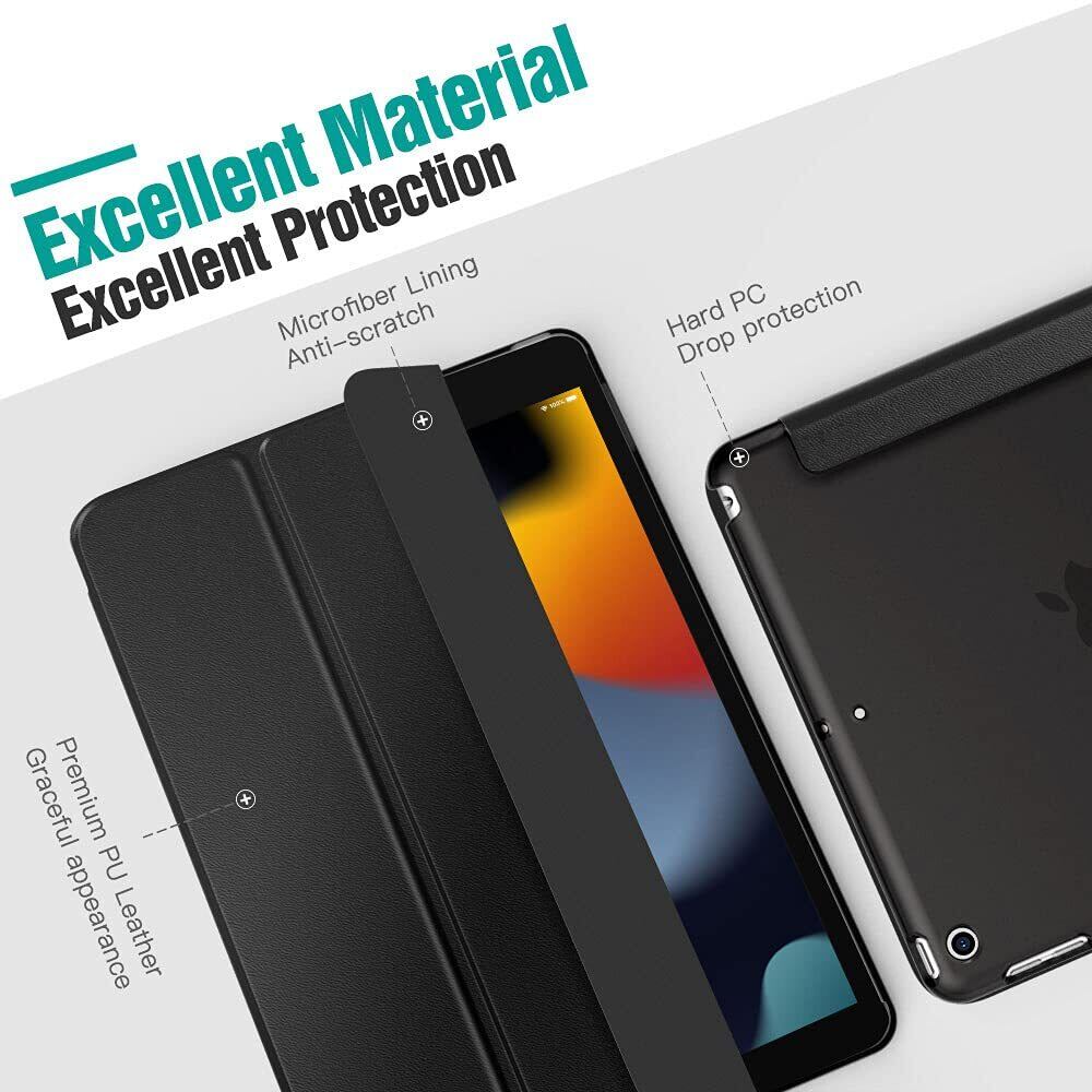 Dadanism 第9/8/7世代 Apple iPad 10.2インチ 2021/2020/2019モデル 半透明 カバー スタンドケース オートスリープ機能 軽量 薄型 PU+PC マイクロファイバー裏地 耐久性 全面保護 Black