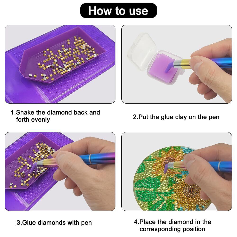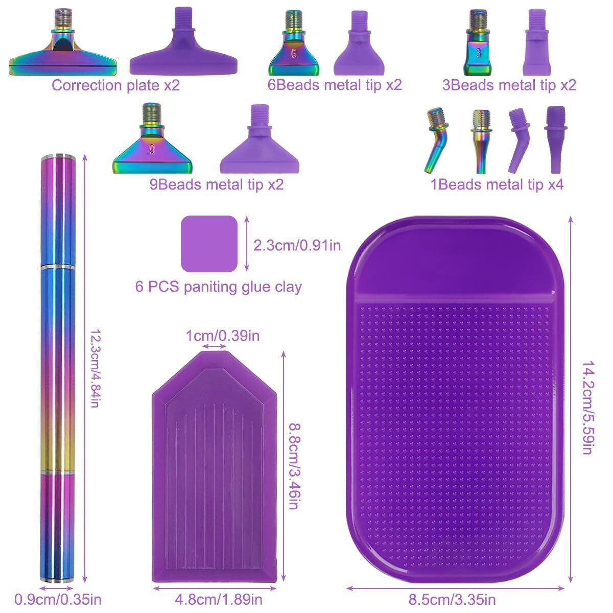 お届けするもの:パッケージには、ダブルエンドダイヤモンドペインティングペン1本、滑り止め粘着パッド1本、プラスチックトレイ2個、交換可能な金属ペン先6個、交換可能なプラスチックペン先6個、粘着コーティング粘土6本が含まれます。