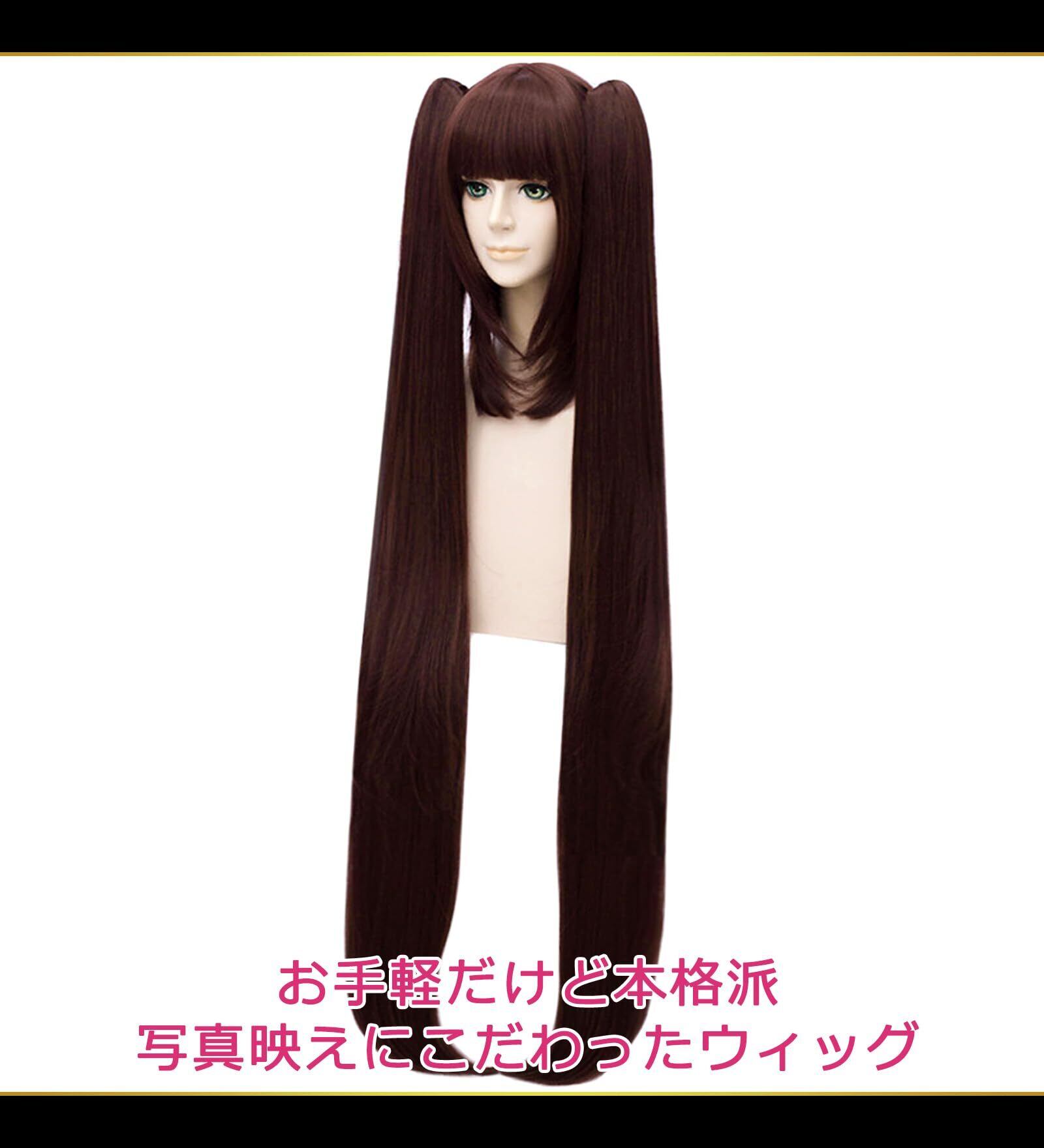 【 憧れのキャラにすぐ変身 】 ダークブラウンのツインテールロングヘアをしたキャラクターのコスプレにおススメ。 このウィッグで憧れのキャラになりきれば、あなたに注目が集まること間違いなし。 ハイクオリティな質感・表現力のあるカラー・美しいヘアデザインを追求し、写真映えするウィッグに仕上げました。 SNS映えする華のある写真を撮りたい方におススメ。