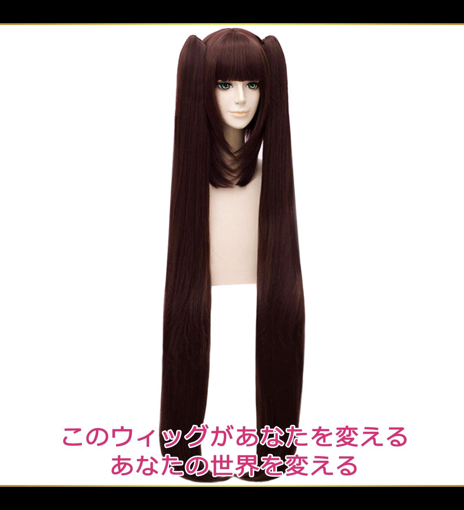 CaseEden コスプレ ウィッグ ロング ツインテール 120cm バンス付き 耐熱 ダークブラウン こげ茶 ウィッグネット2個セット