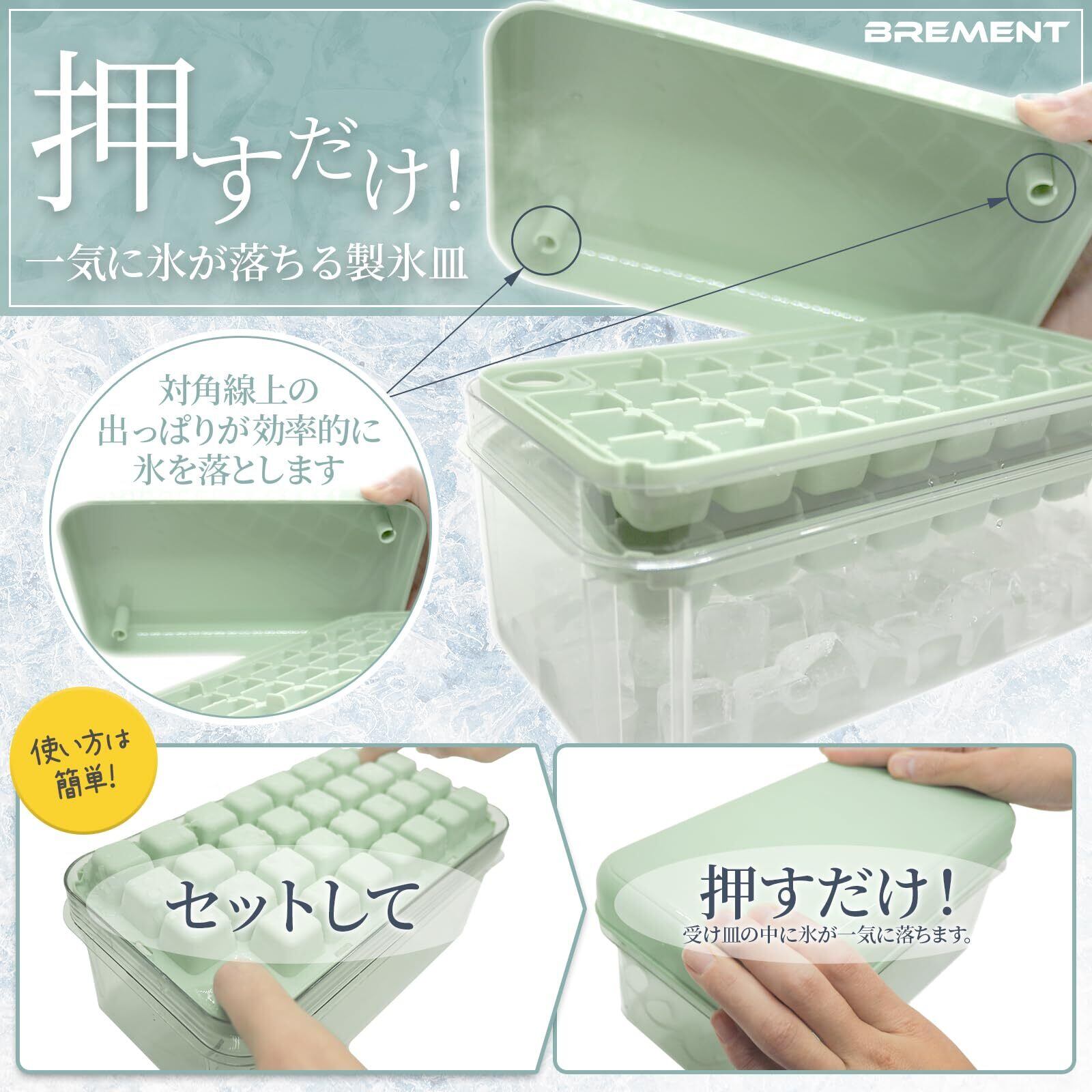 【ワンプッシュ!氷が取れる】BREMENT 製氷皿 2枚入り アイストレー 家庭用 容器 製氷器 製氷機 氷が作れる (グリーン)