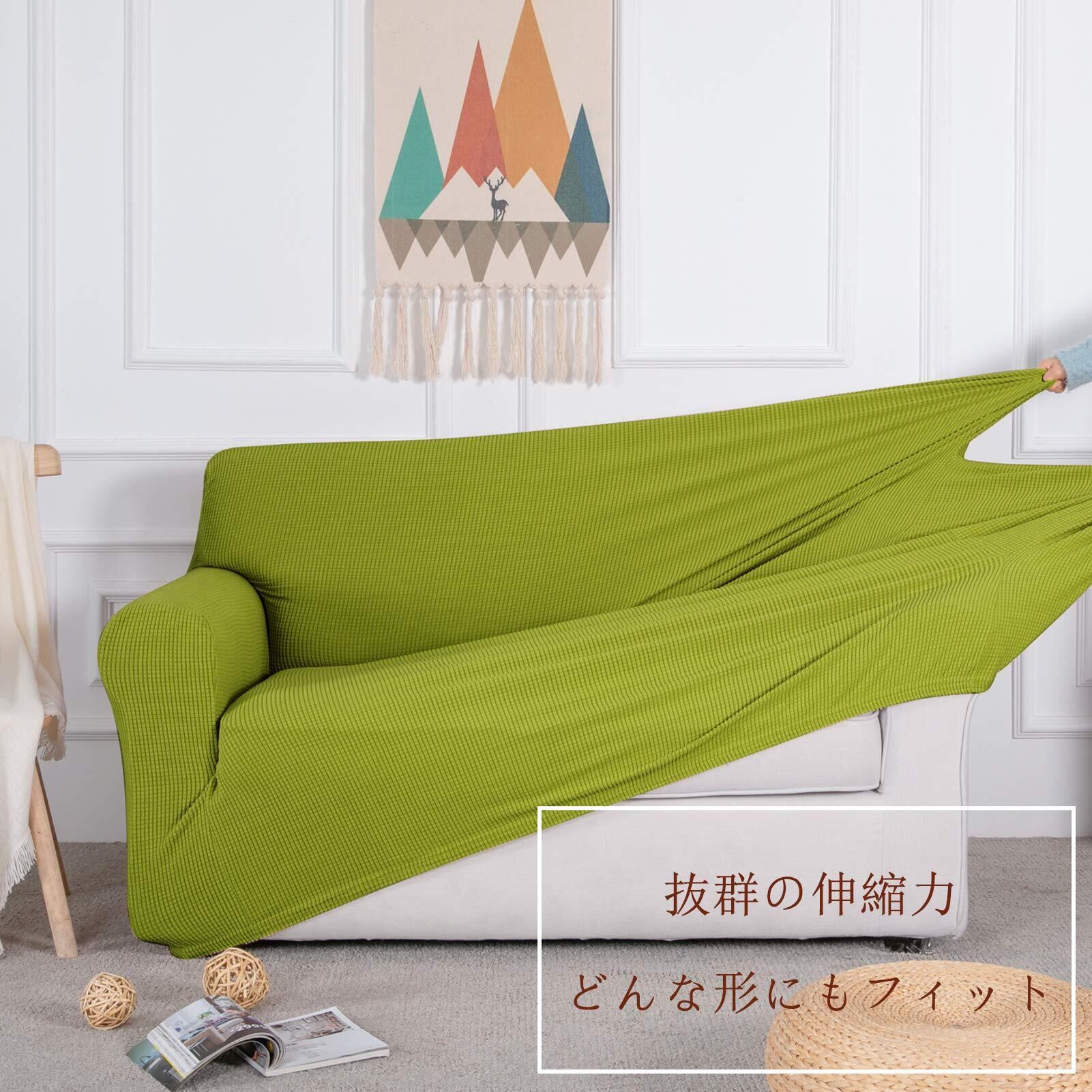 簡単着脱:ストレッチソファーカバーです。生地がグングン伸びて、簡単に着脱でき、肘付きソファーなど様々なソファーに適用です。滑り止め効果あります。女性一人でも簡単に取り付け可能です。